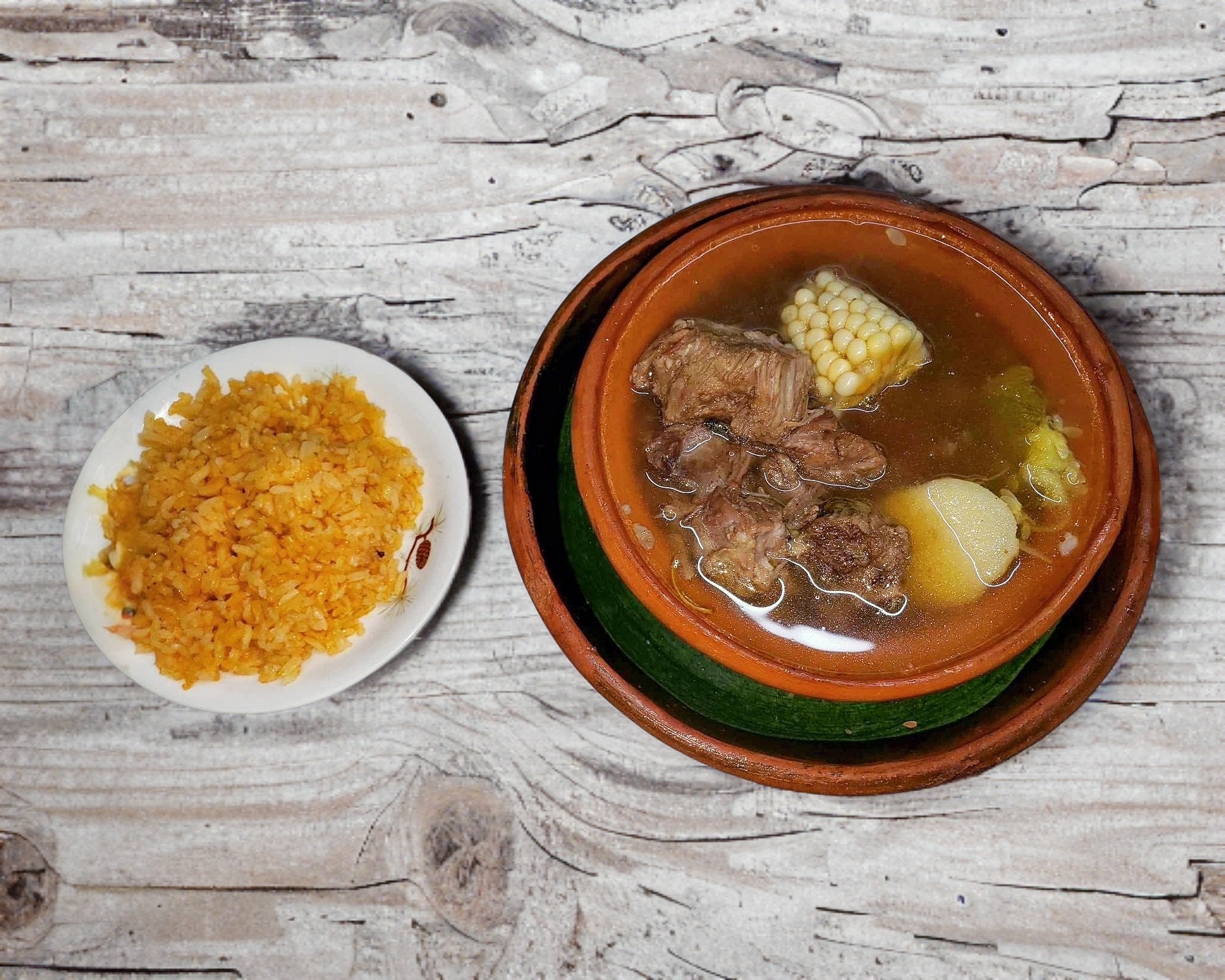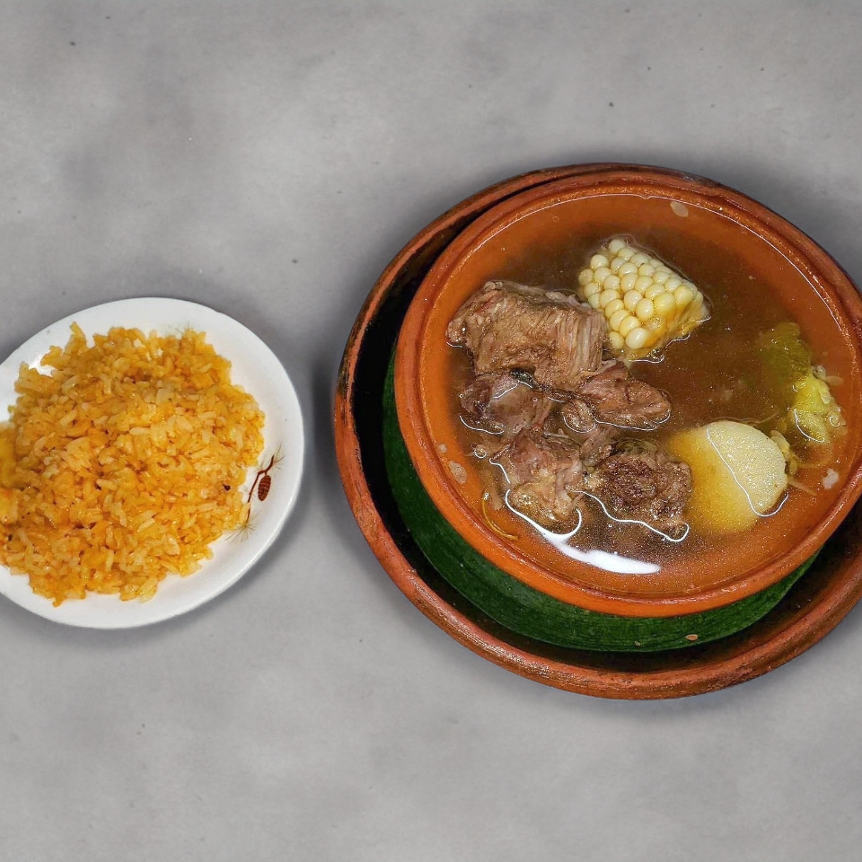 Caldo de Res con arroz y Tortillas de maiz o harina