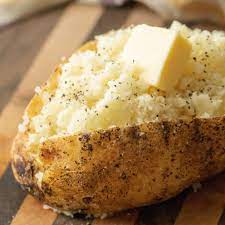 🥔 Papa Horneada con Mantequilla Acompañadas de una papa horneada al horno, suave por dentro y dorada por fuera, bañada en mantequilla derretida.