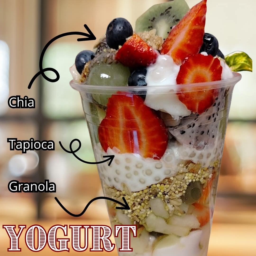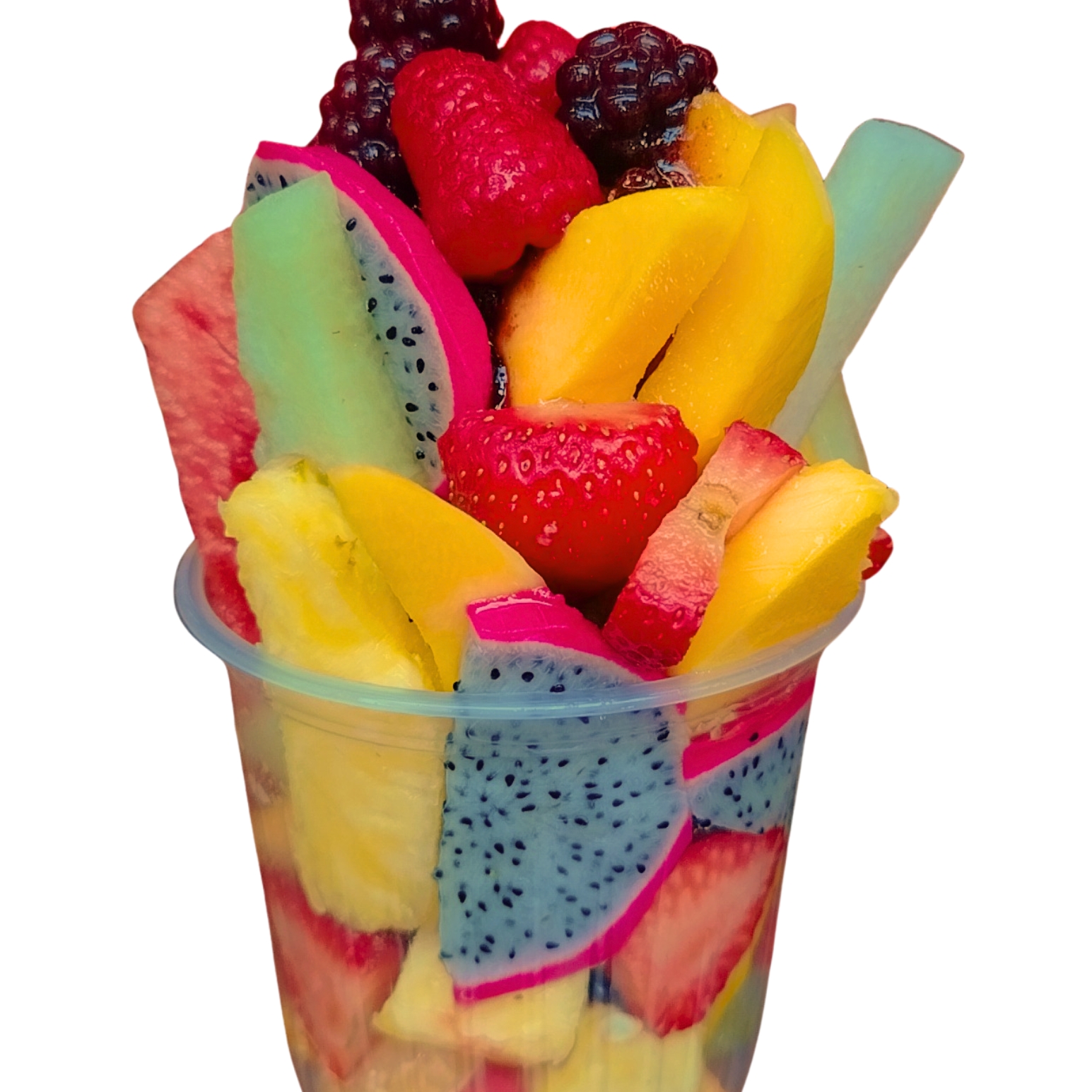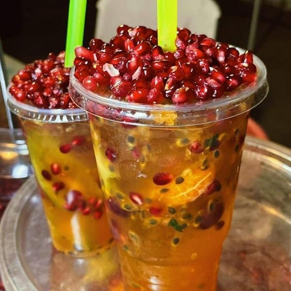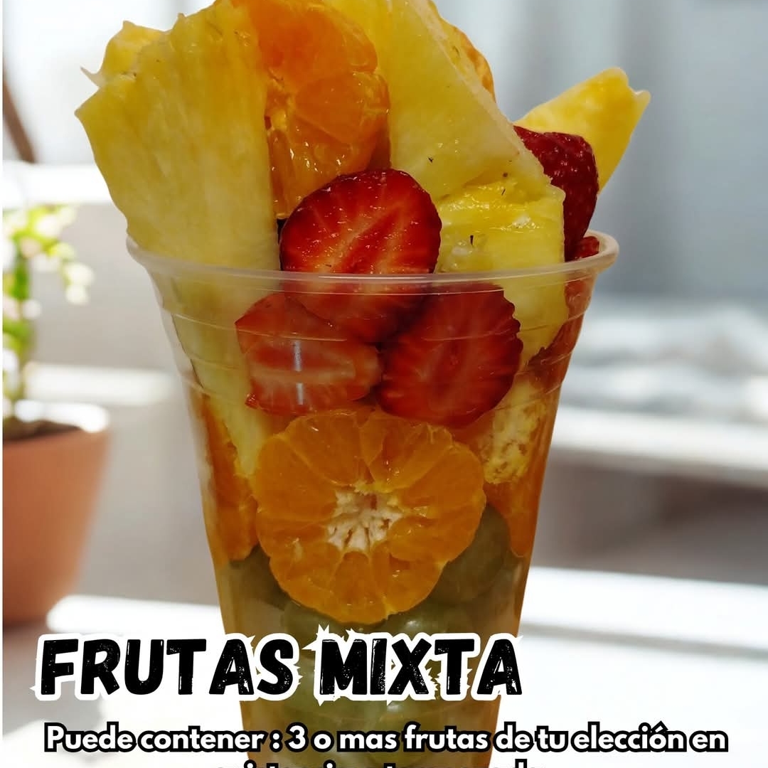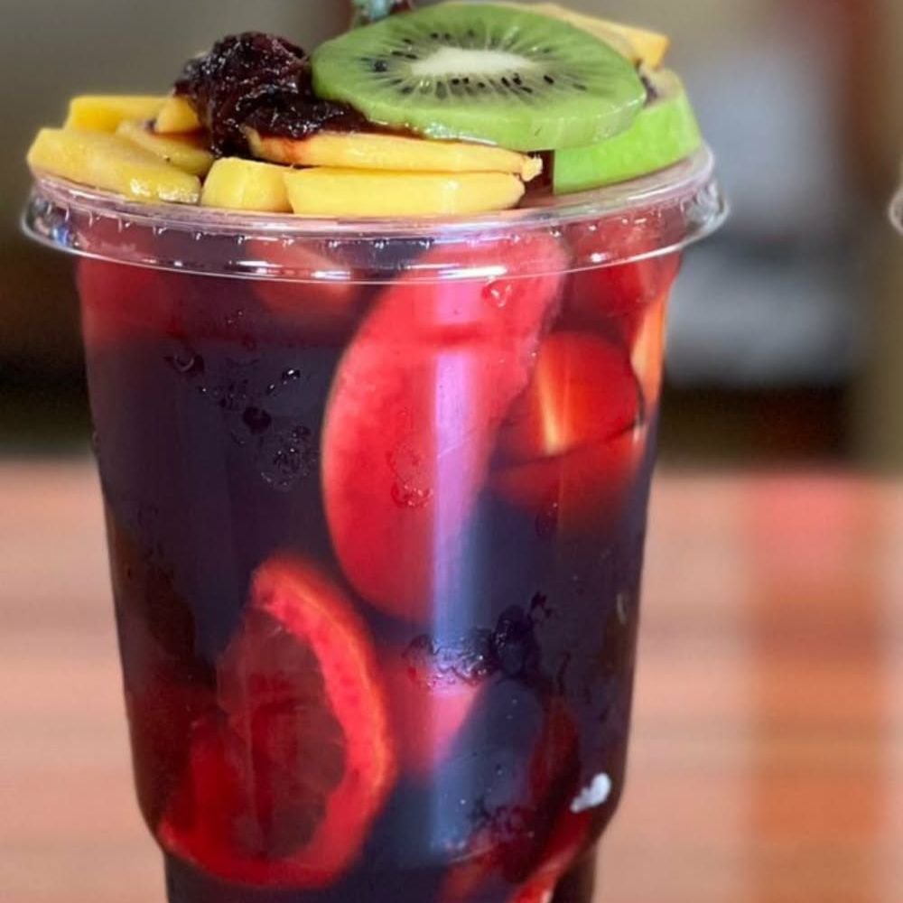 Bebida realizada con base en pulpa de maracuyá con un toque de agua mineral incluye frutas varias de temporada dentro y fuera.
