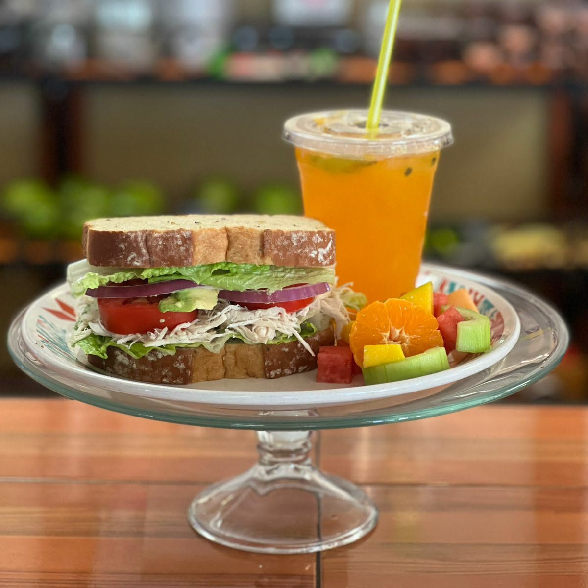 Lechuga, tomate, aguacate, cebolla, proteina. Agua 14oz. Complementos frutal