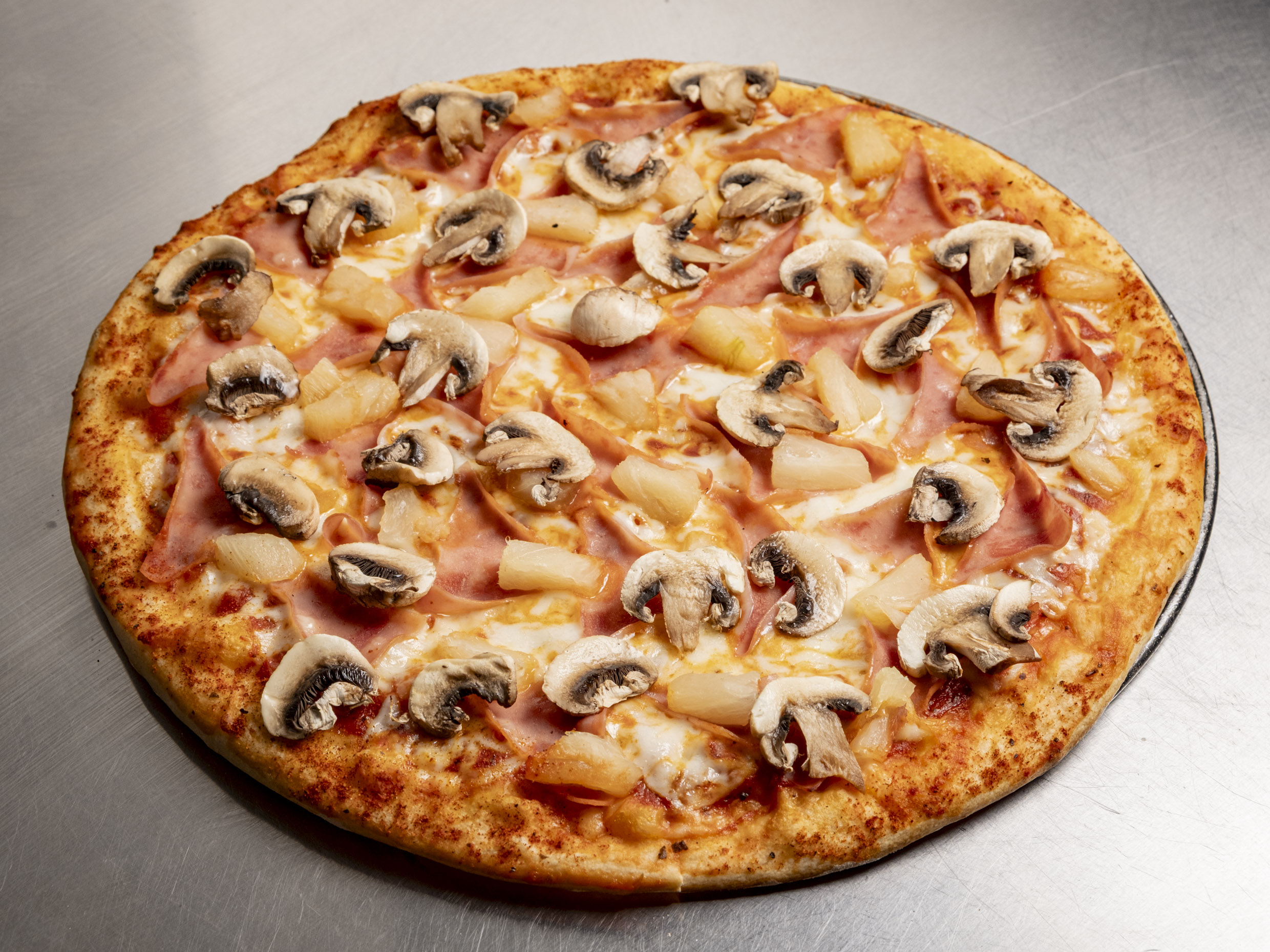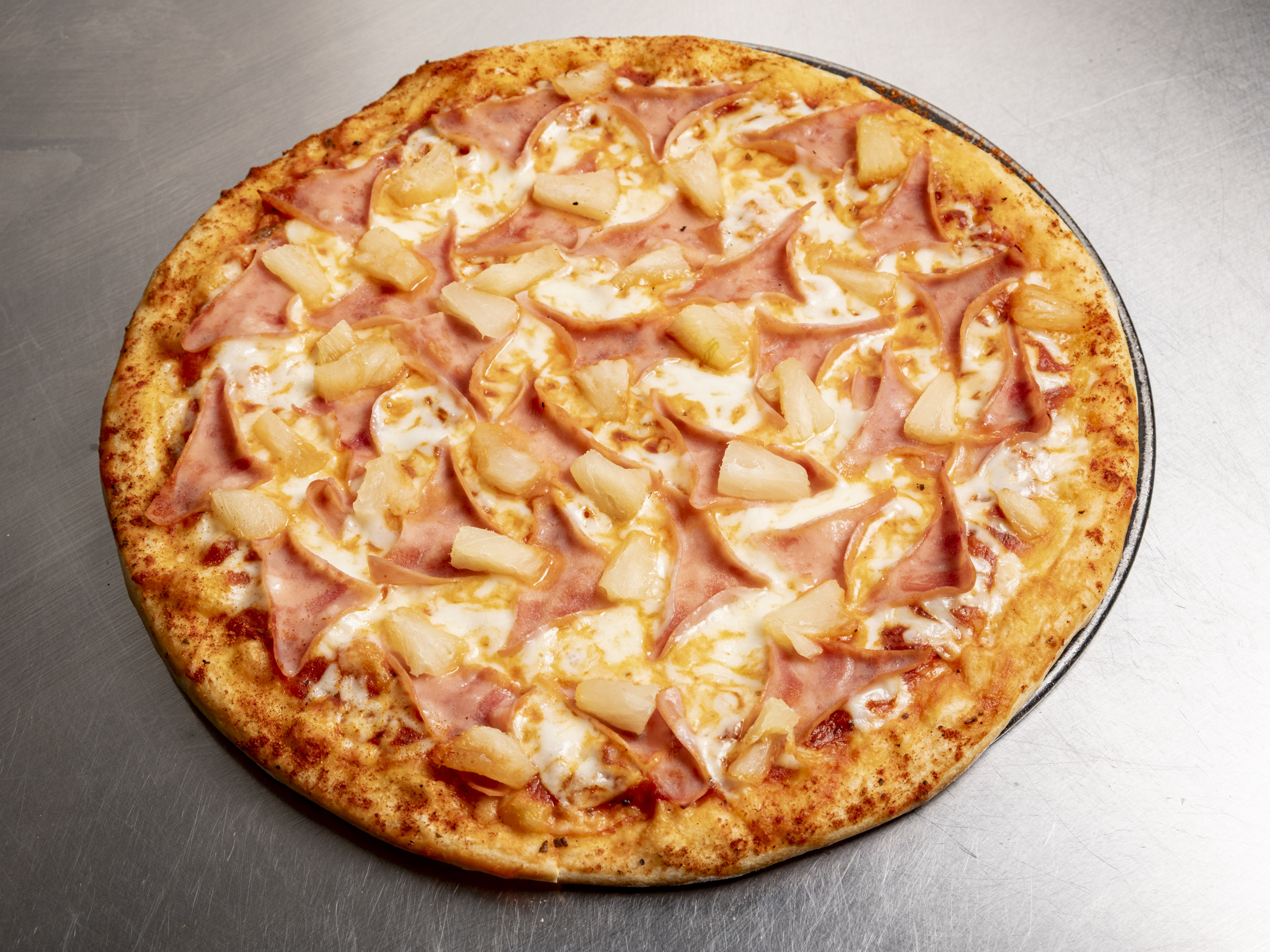 SALSA DE TOMATE, 2 QUESOS, JAMON, PIÑA.