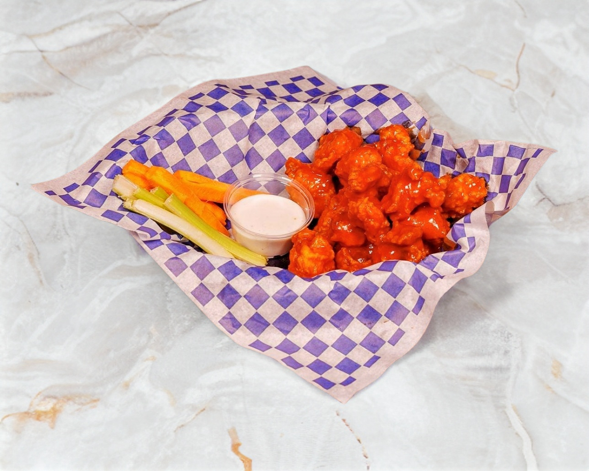 Boneless 100 % Pechuga de pollo acompañada de vegetales frescos y un cremoso dip ranch los puedes pedir BBQ, Bufalo Spacy o mixtos.
