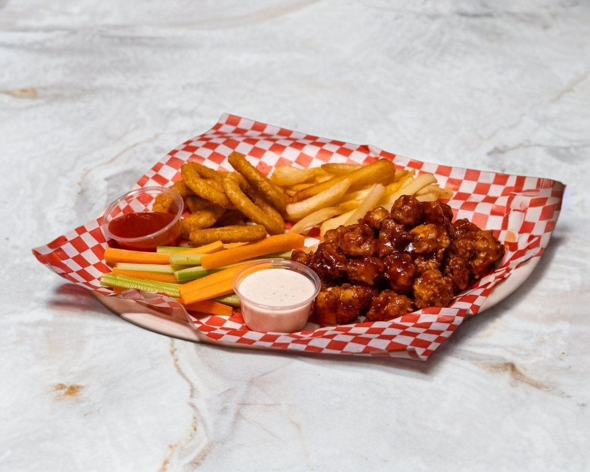 Sampler (Boneless, Aros de Cebolla, Papas Fritas)