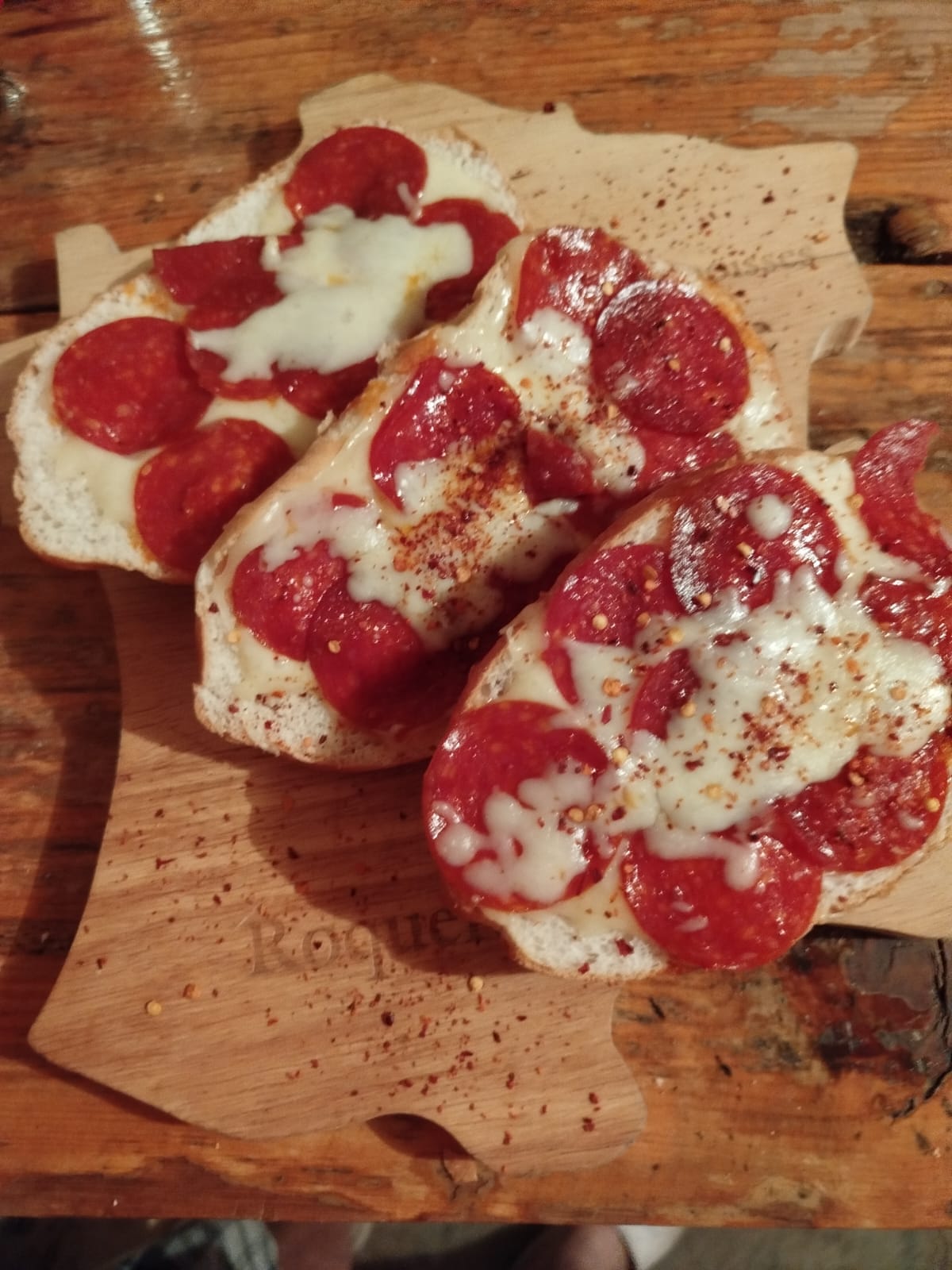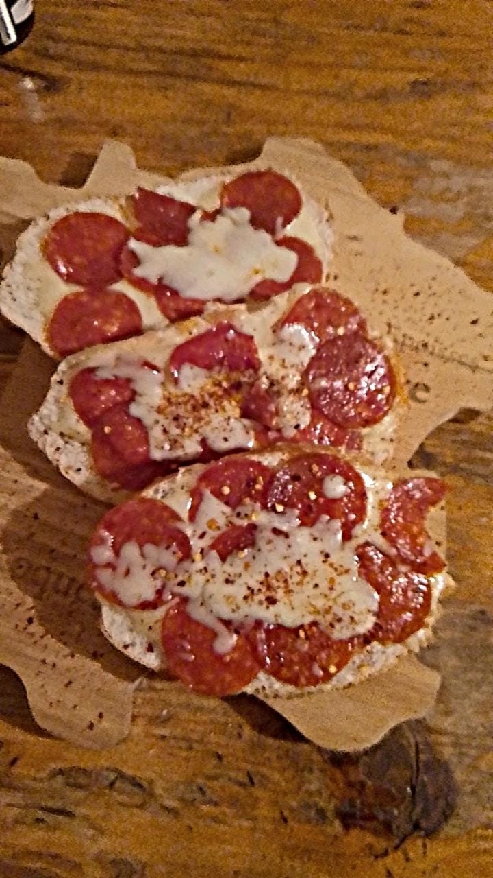 Dos piezas hechas sobre pan, con salsa ragu, pepperoni y queso monterrey.
