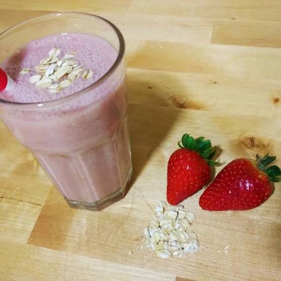 Malteada con plátano, fresa, leche, avena o granola y miel. 20EU