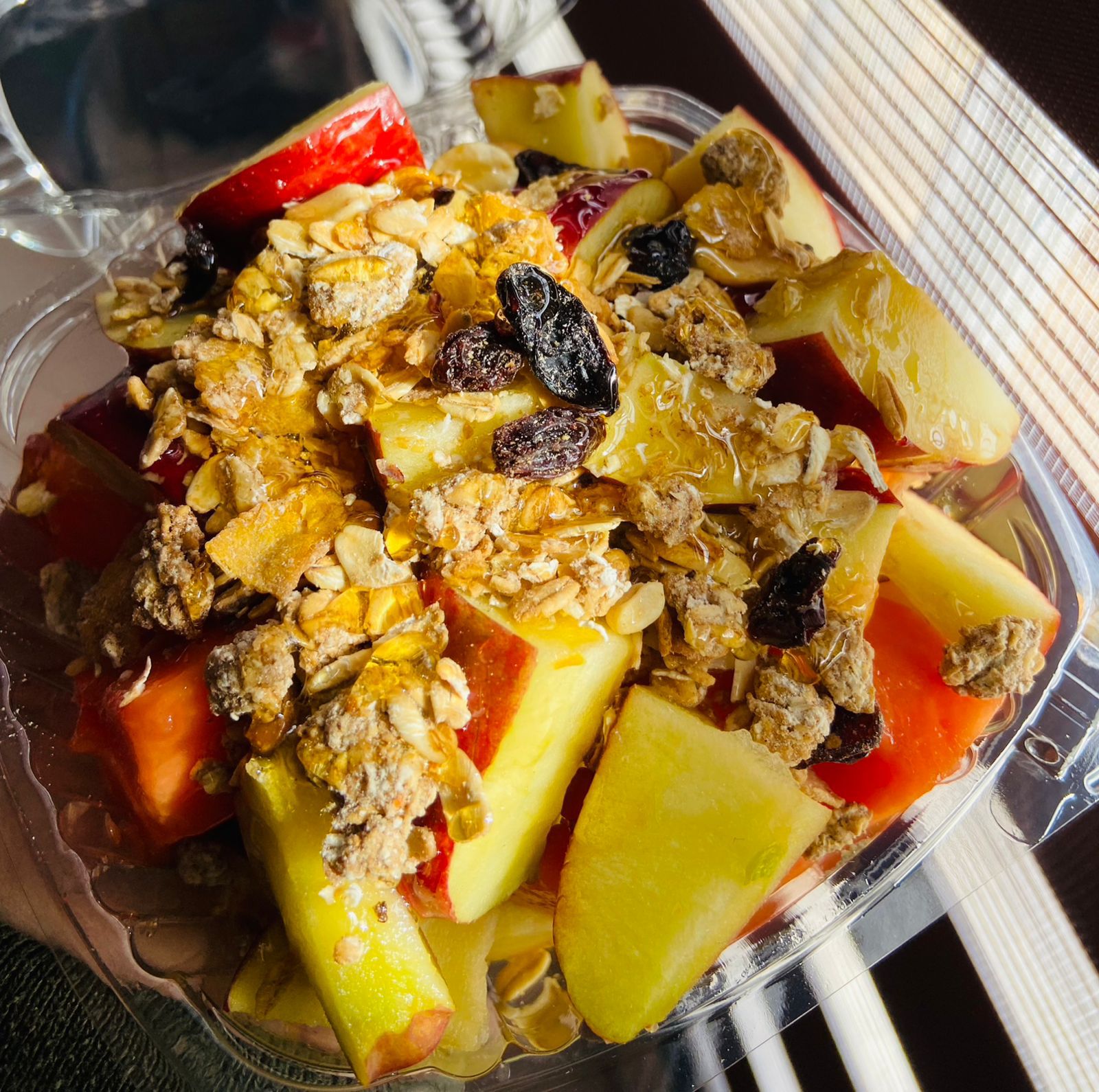 Fruta de temporada miel con granola.