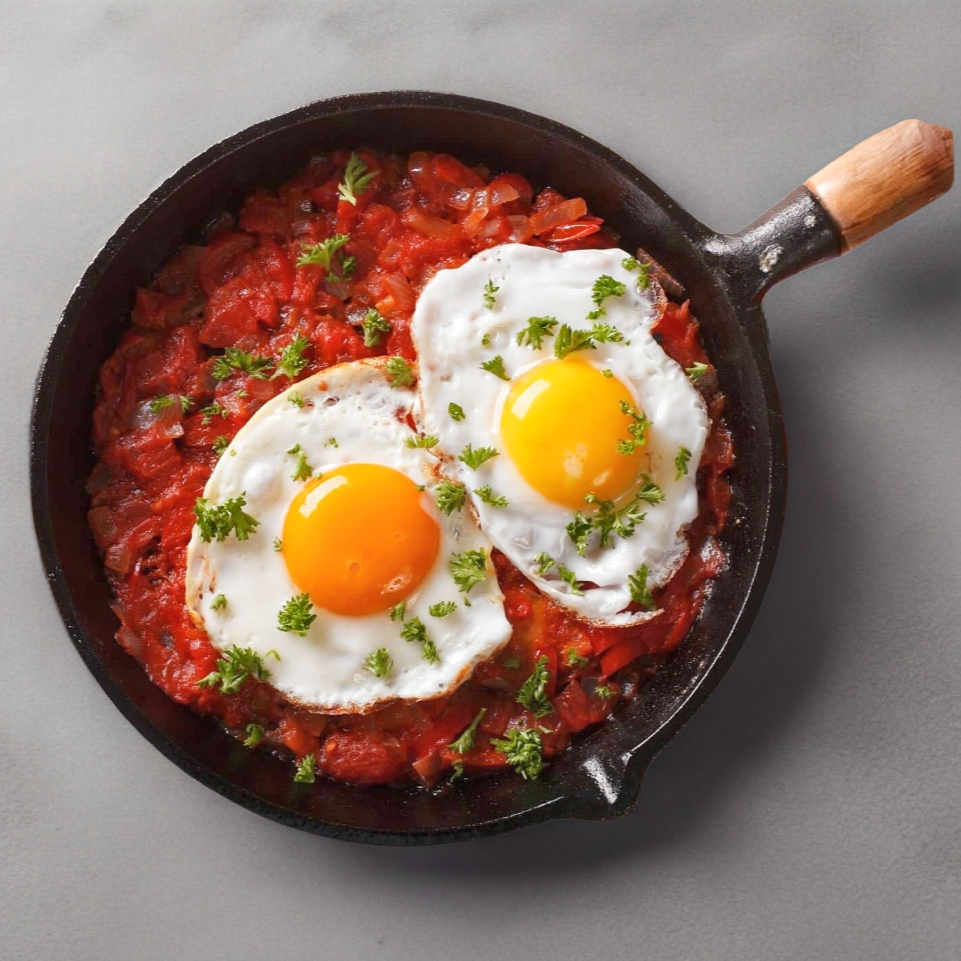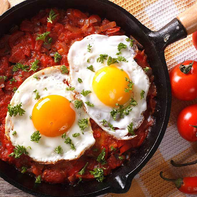 3 huevos estrellados con salsa con tomate, cebolla y cilantro, frijol, y 2 tortillas de harina o 3 de maíz