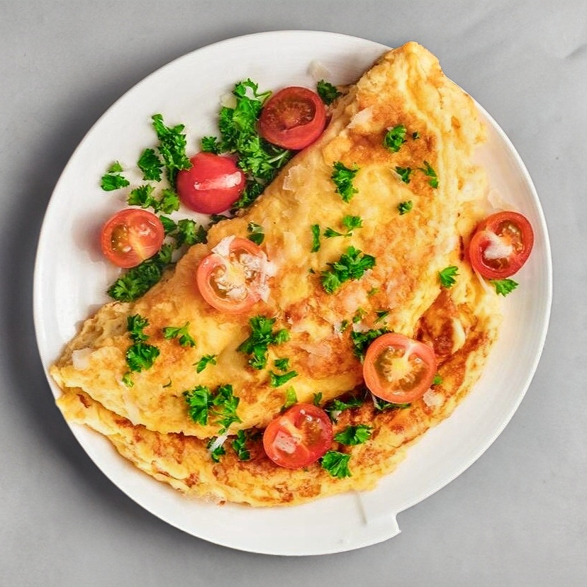 Omelette con jamón, queso, frijoles y tortillas de harina o maíz.