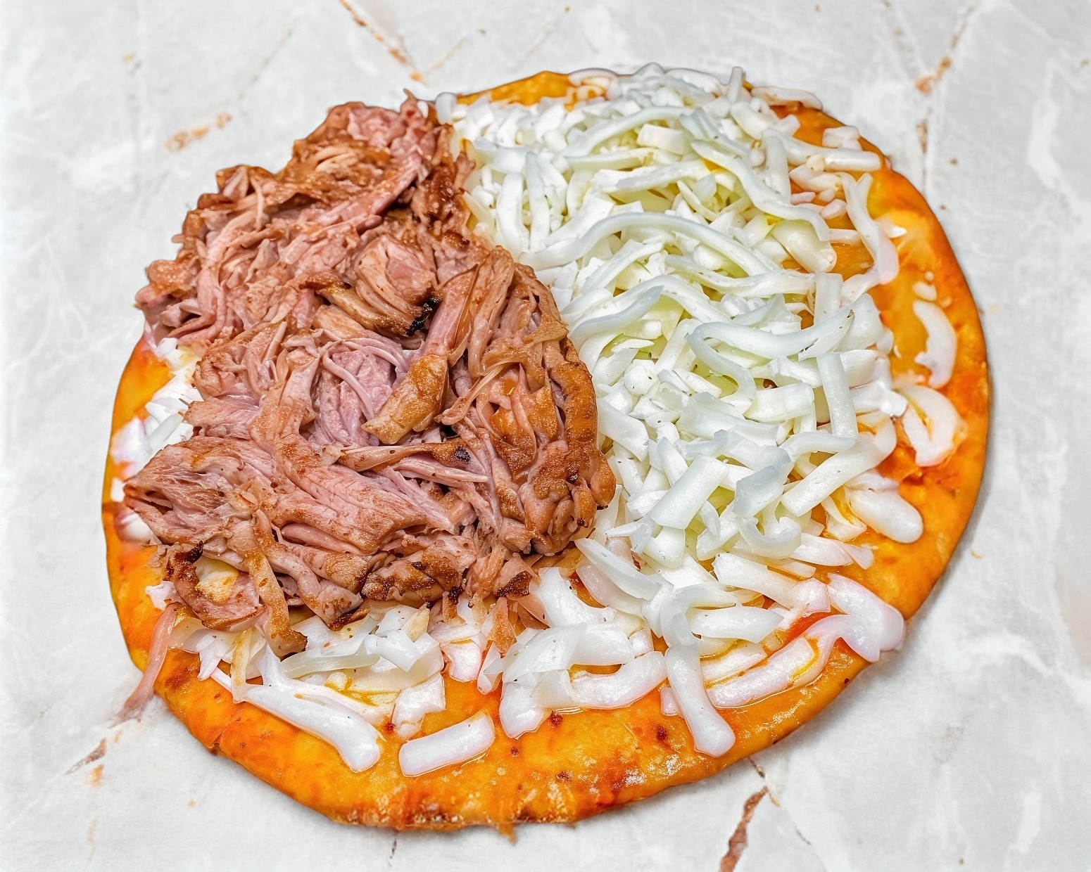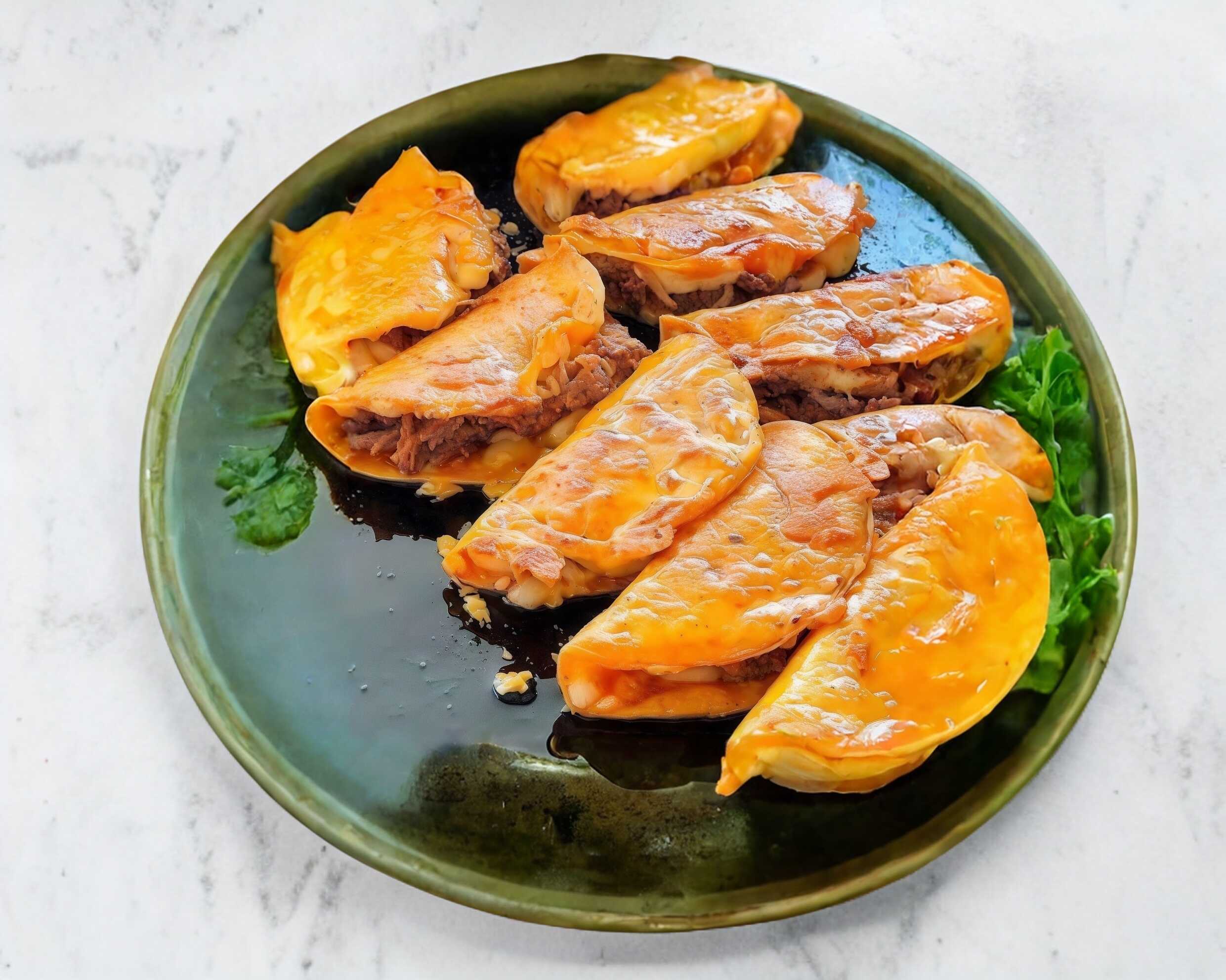 Rico pan blanco relleno de birria especial DON TORO y costra de queso.