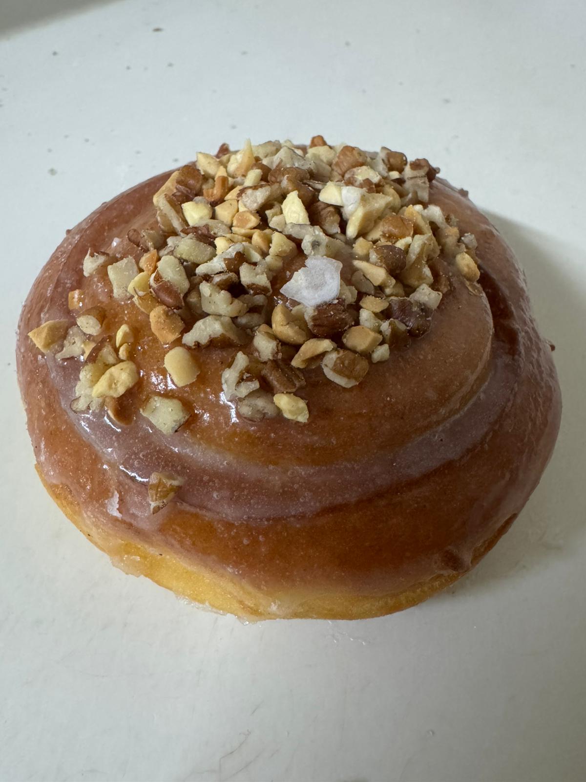 Dona con glaseado dulce y un toque de canela espolvoreada.