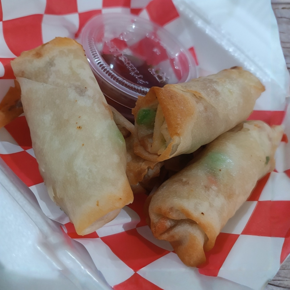 Deliciosos Rollitos Primavera de Vegetales, acompañado de Salsa Soya y Jengibre.