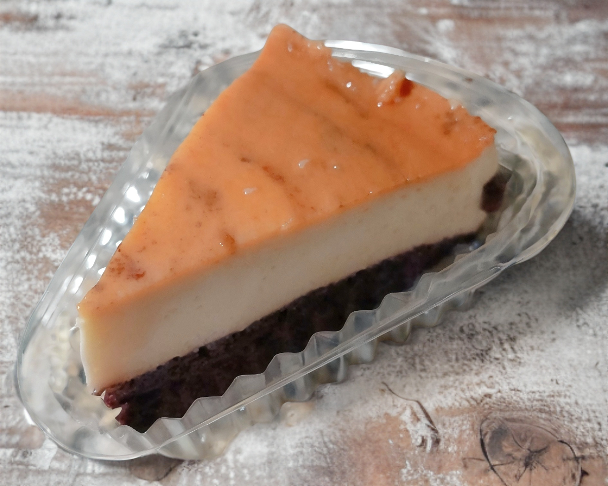 Delicioso postre, flan cremosito sobre pastel de chocolate.