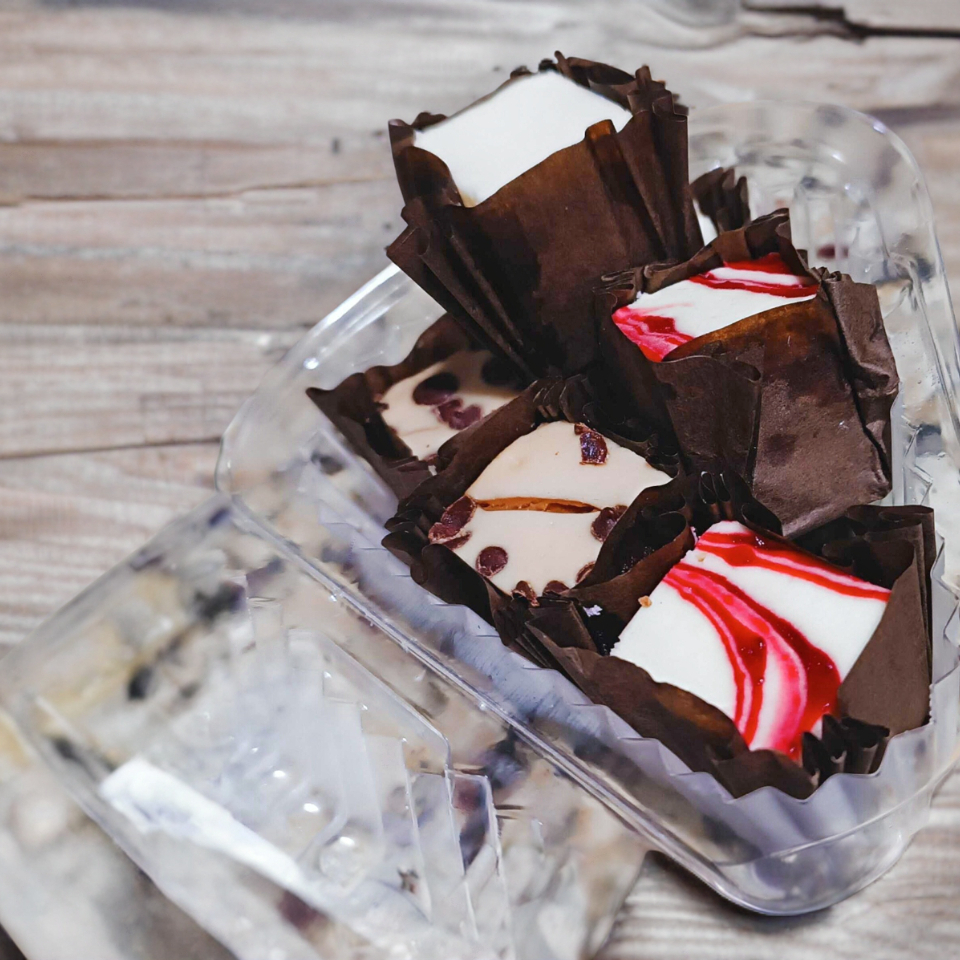 Mini Cheesecake, NewYork, Chispas de Chocolate & Veteado de Fresa.