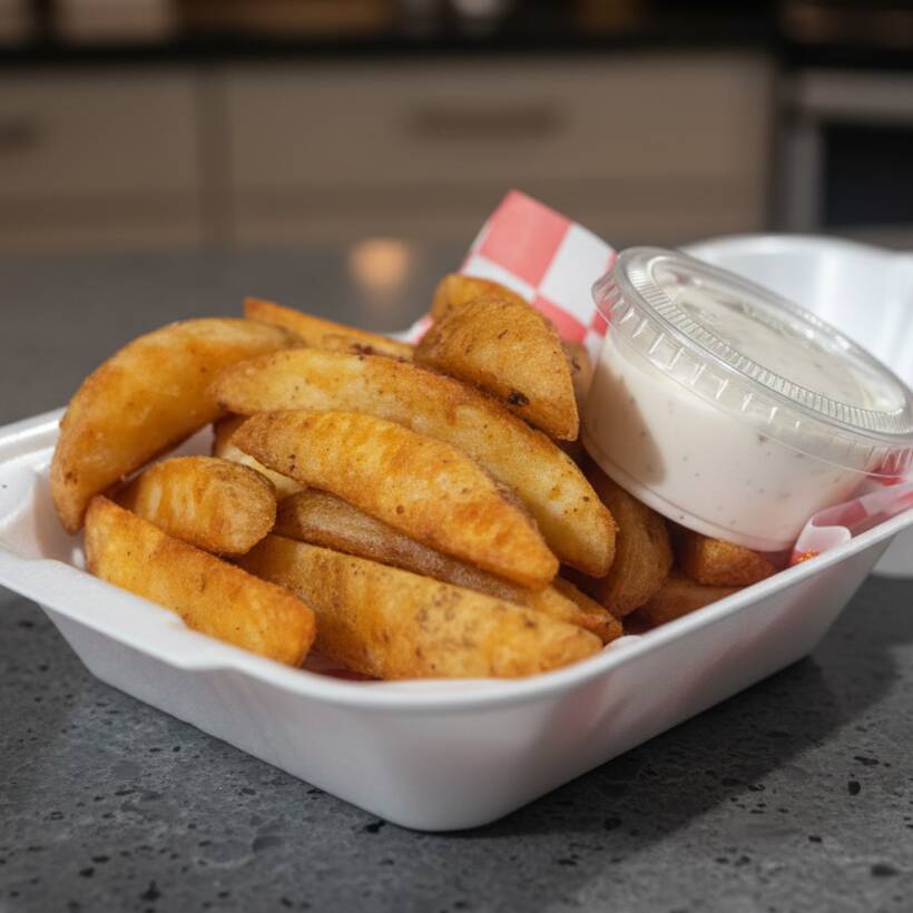 Orden de Papas en Gajo Crujientes, Acompañadas con Dip Ranch & Cátsup.