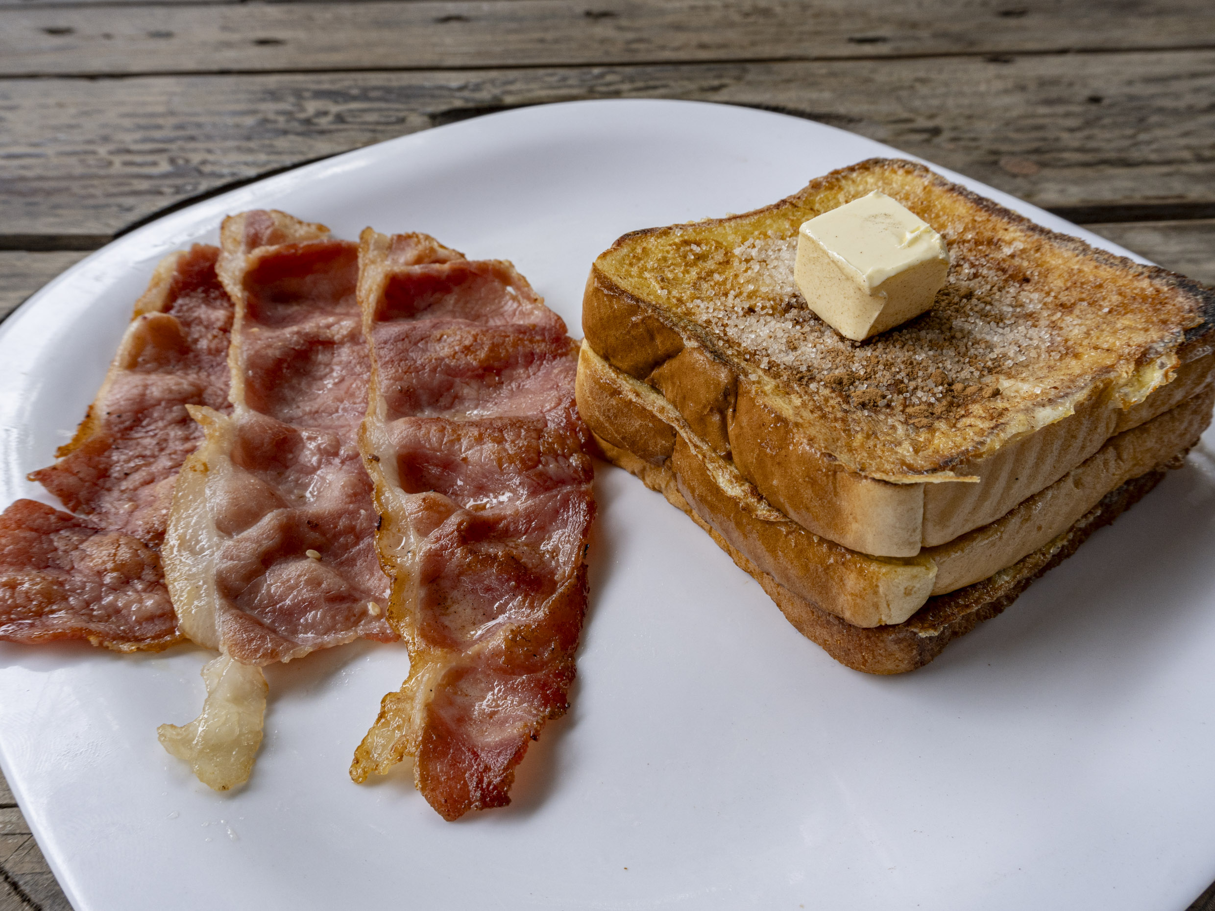3 pan francés acompañando de tocino doradito