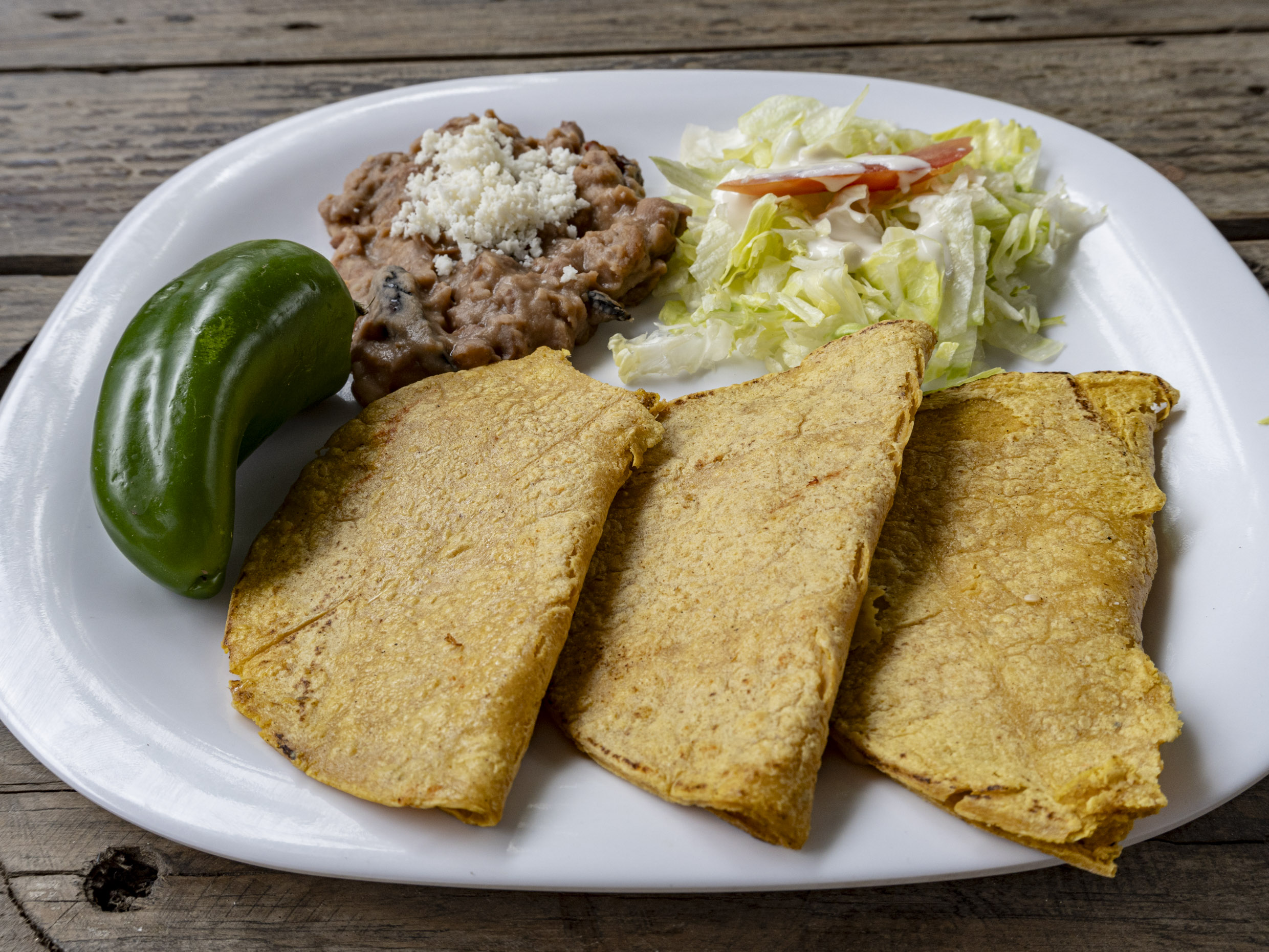 Tortilla doradito con jamón doradito ensalada y frijoles