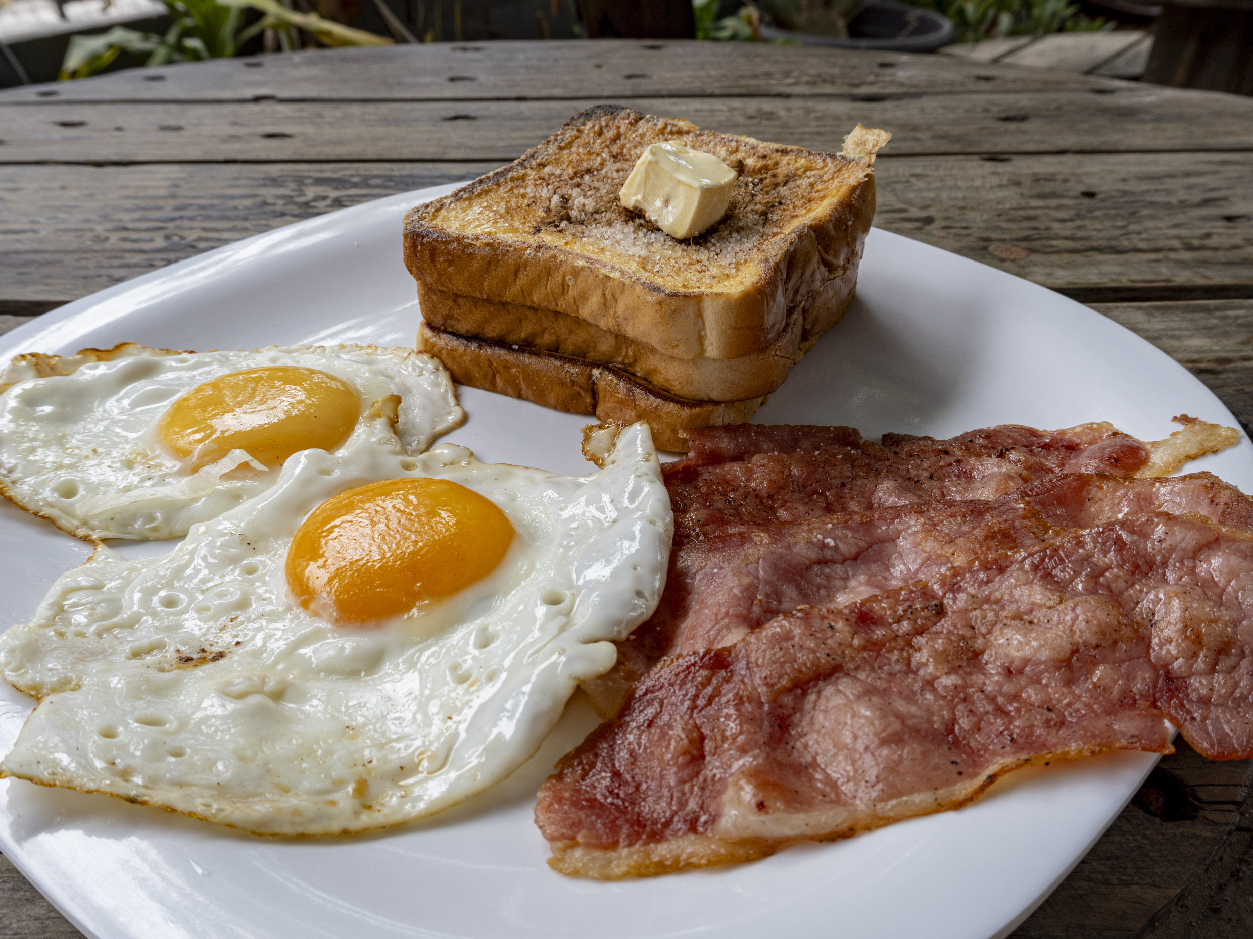 3 pan francés con 2 huevos al gusto y tocino doradito