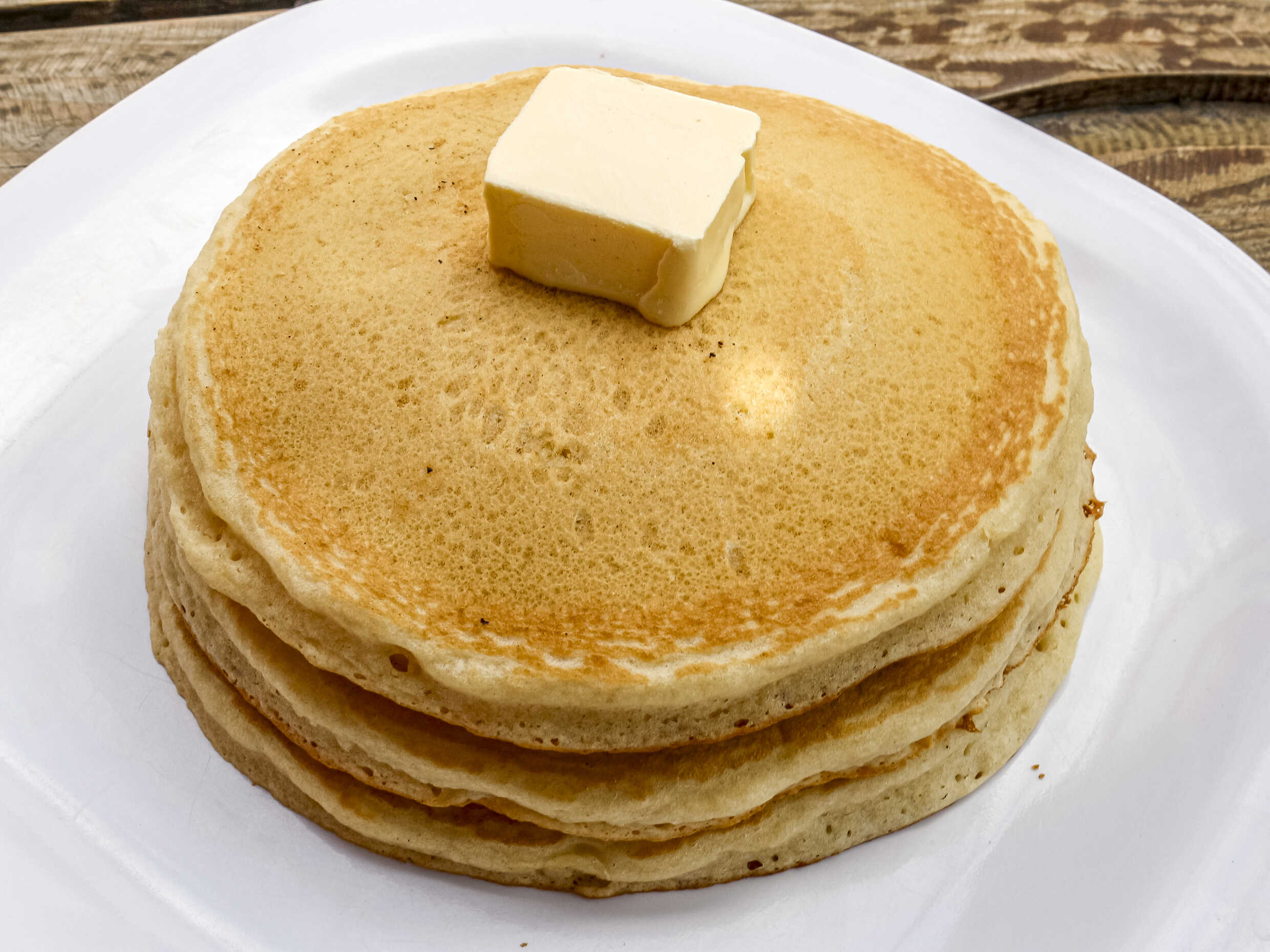 3 hot cakes con mantequilla y miel de maple.