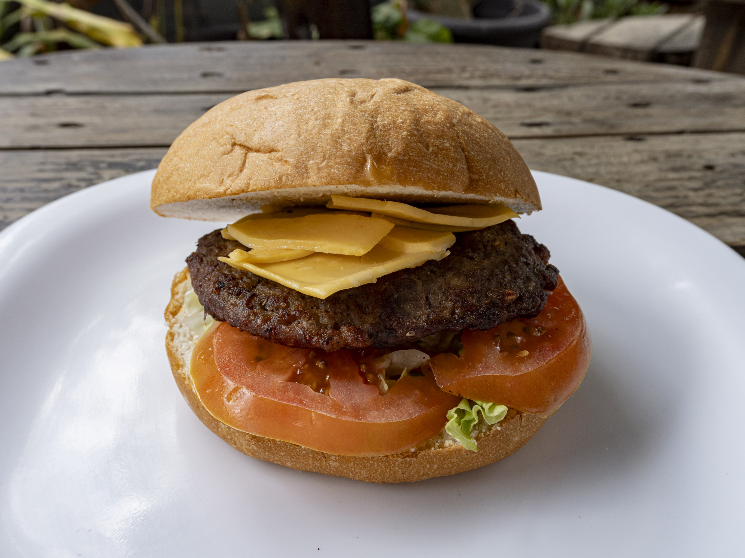 Carne de res queso amarillo lechuga tomate cebolla mayonesa y catsup