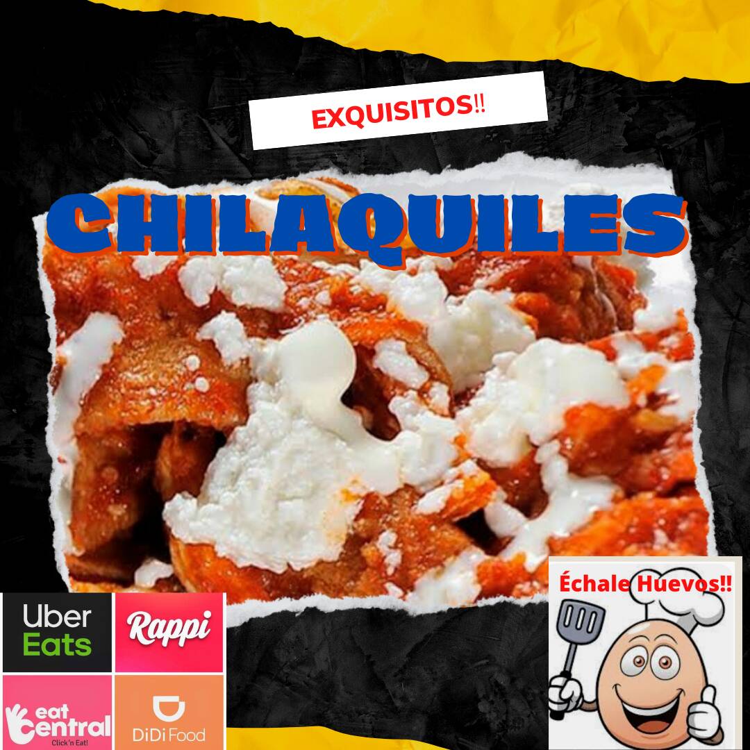 Chilaquiles con huevos al gusto y carne.