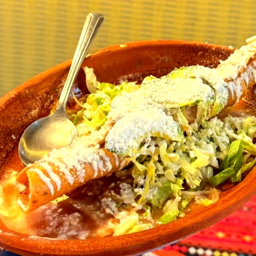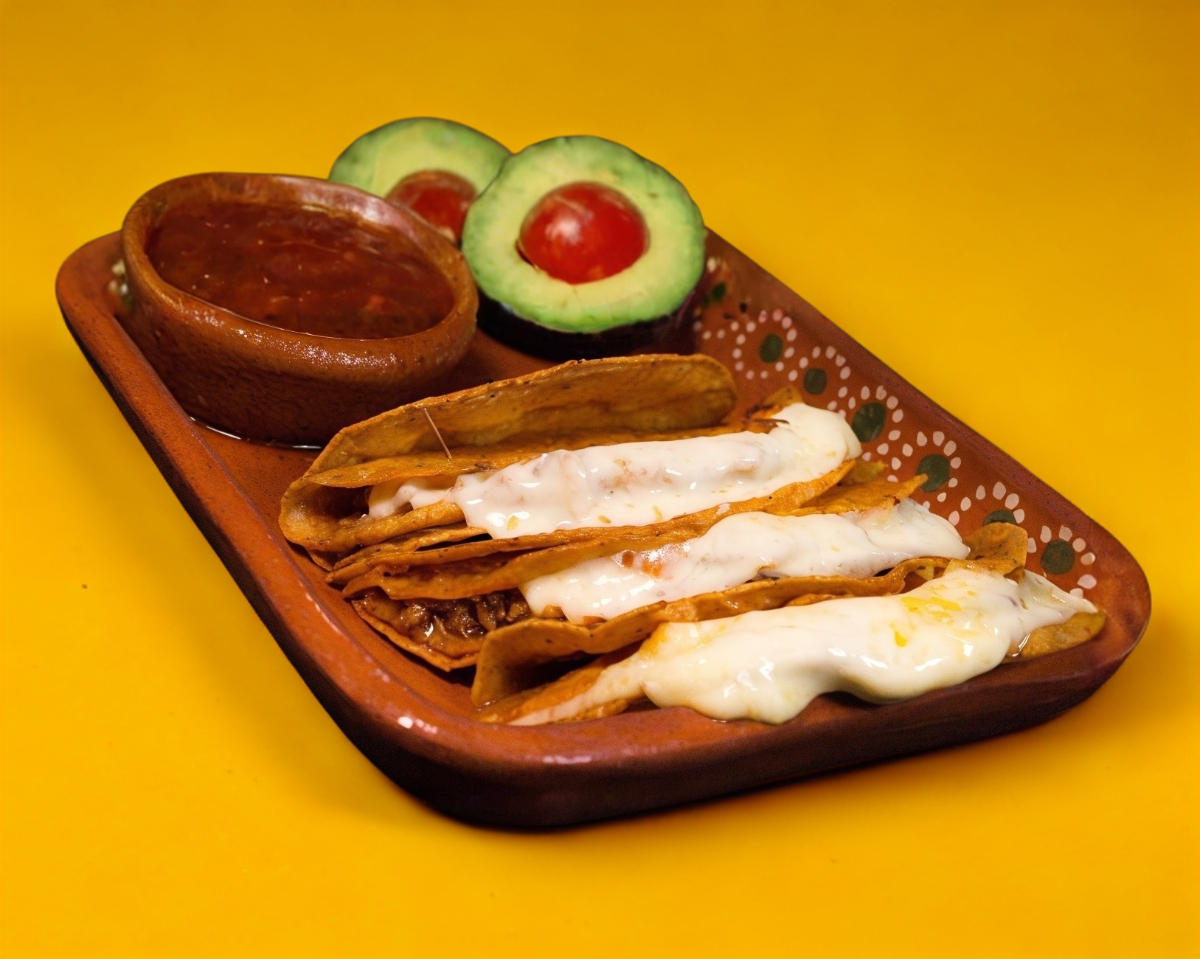 3 flautas, empanada con queso y un ingrediente, taco de barbacoa