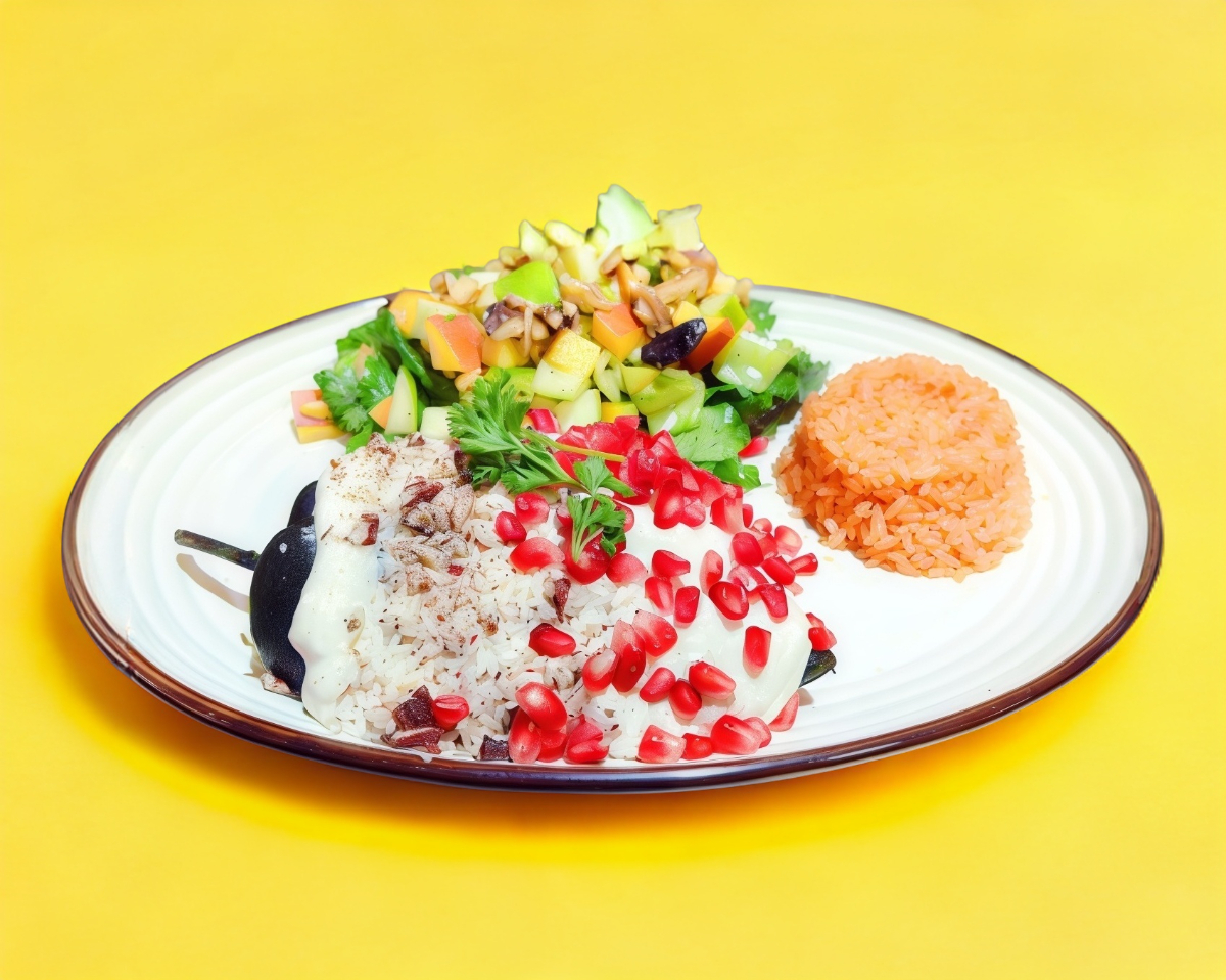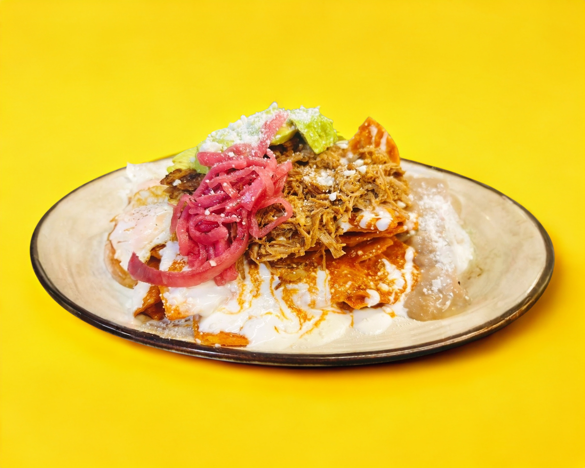 Chicharrón prensado, machaca, rajas con crema, queso panela, arroz, frijol frito. Con tortillas de harina o maíz