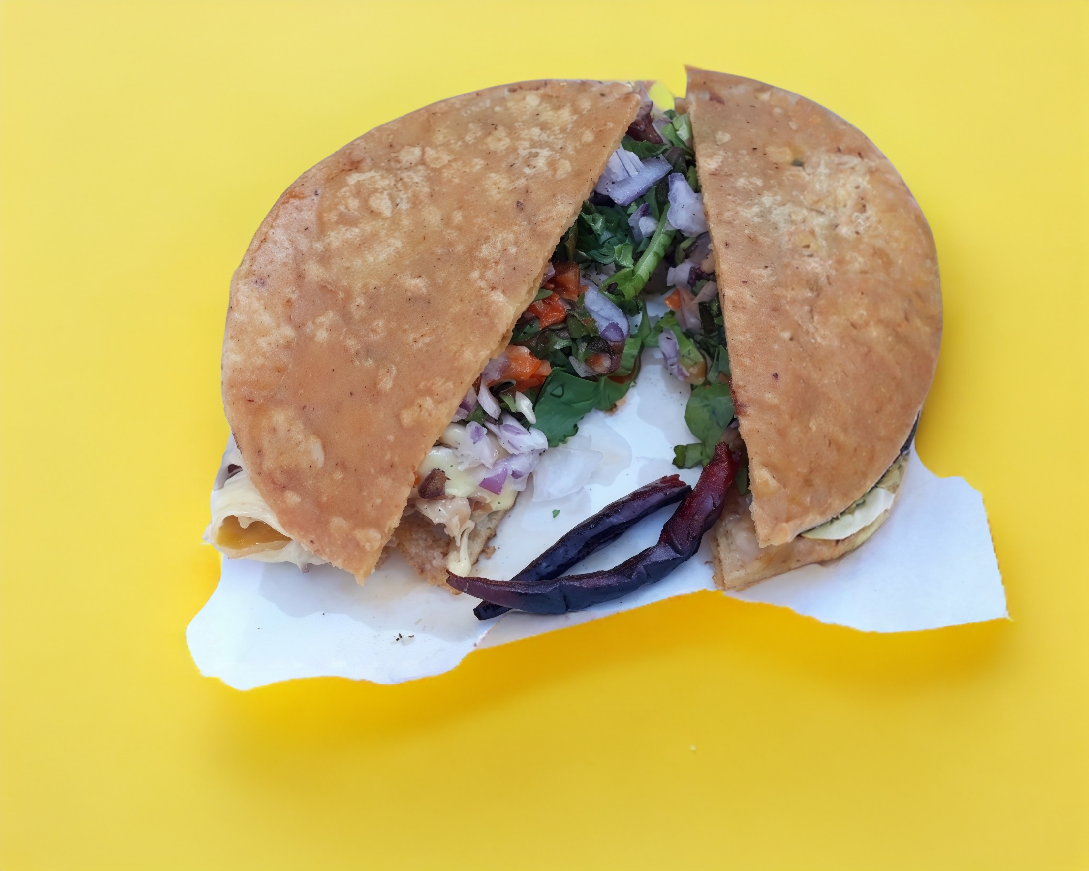 Rica quesadilla elaborada con tortilla de maíz en forma de sincronizada