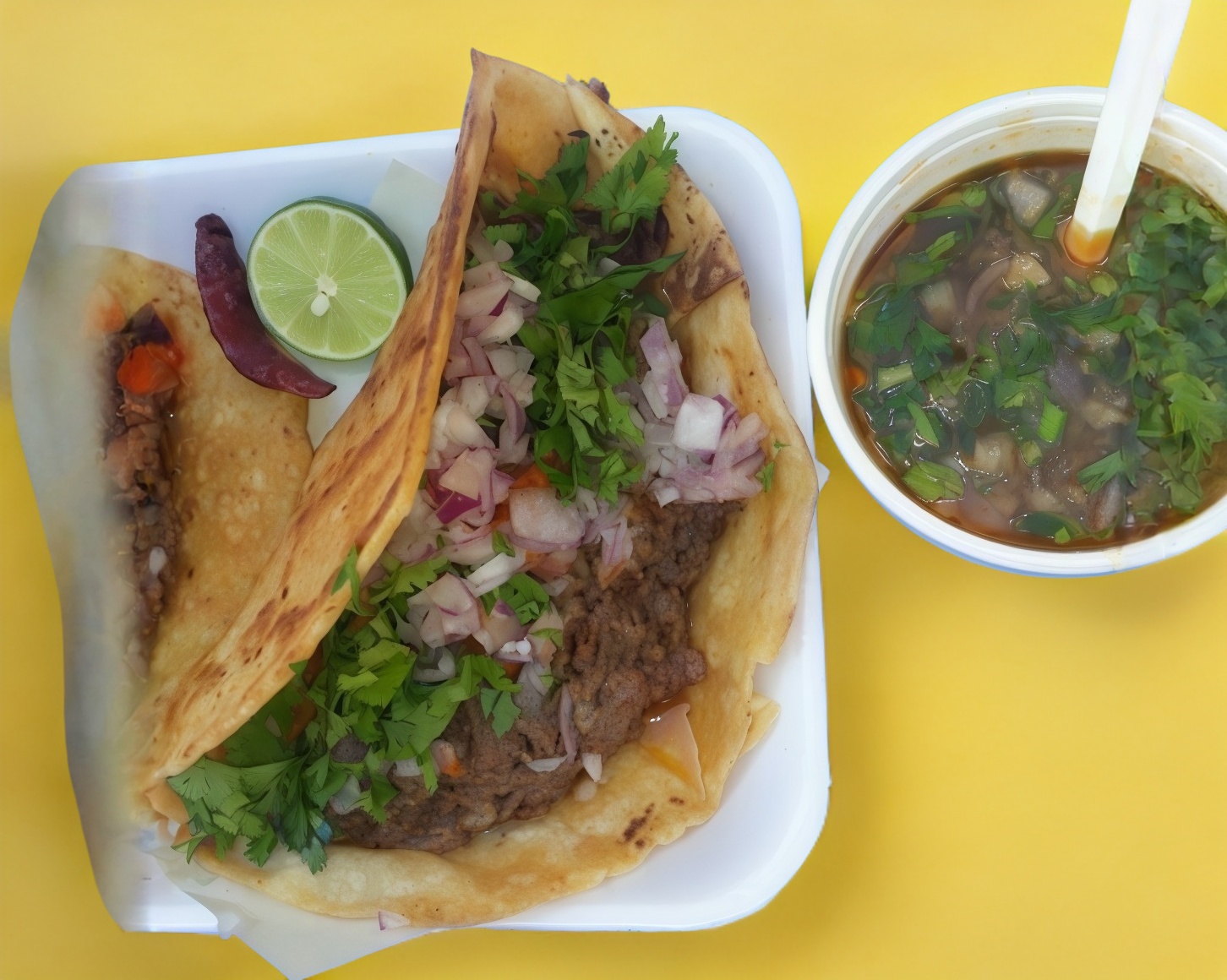 Elije tus tacos blanditos o dorados. Incluye verdura. caldo 06 oz de cortesia solo si hay disponibilidad
