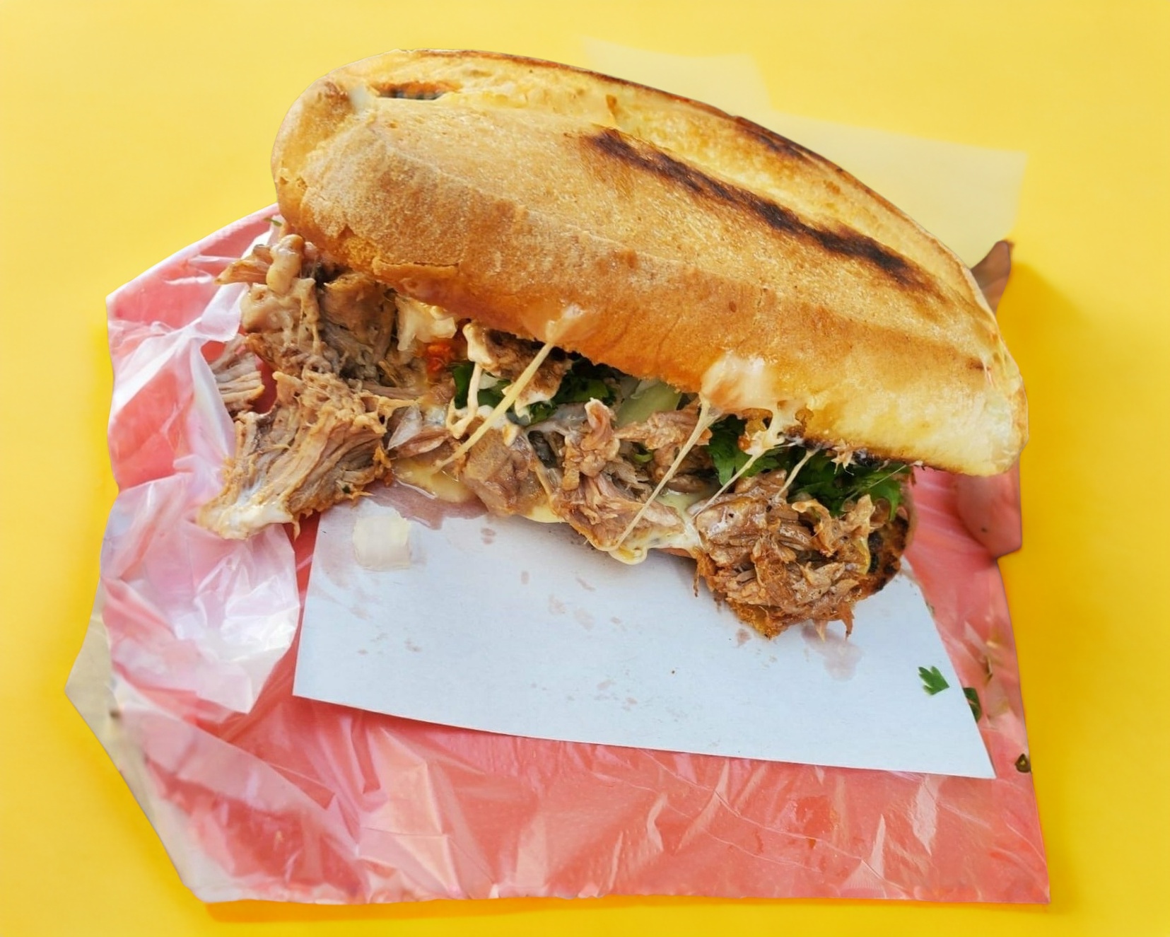 Rica quesabirria en forma de sincronizada, queso chiguagua, con carne doradita de res tatemada.