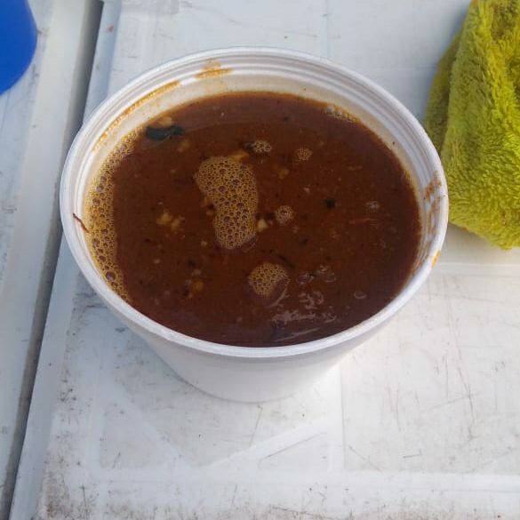 Jugo con carne de la doradita en vaso de 16 oz con 8 tortillas.