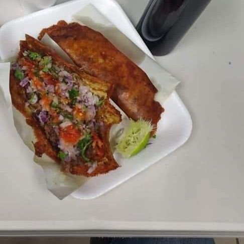 Delicioso taco de carne doradita puedes pedirnos tus tacos blanditos o doraditos. caldo 06 oz de cortesía solo si hay disponibilidad