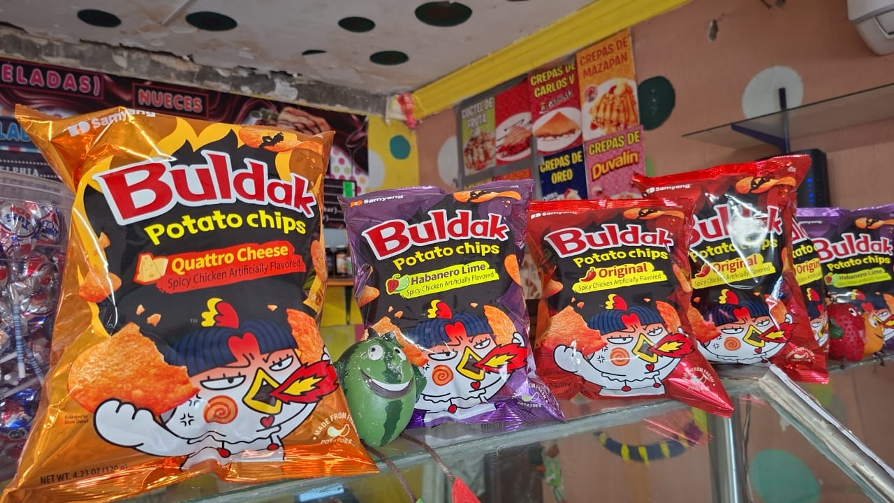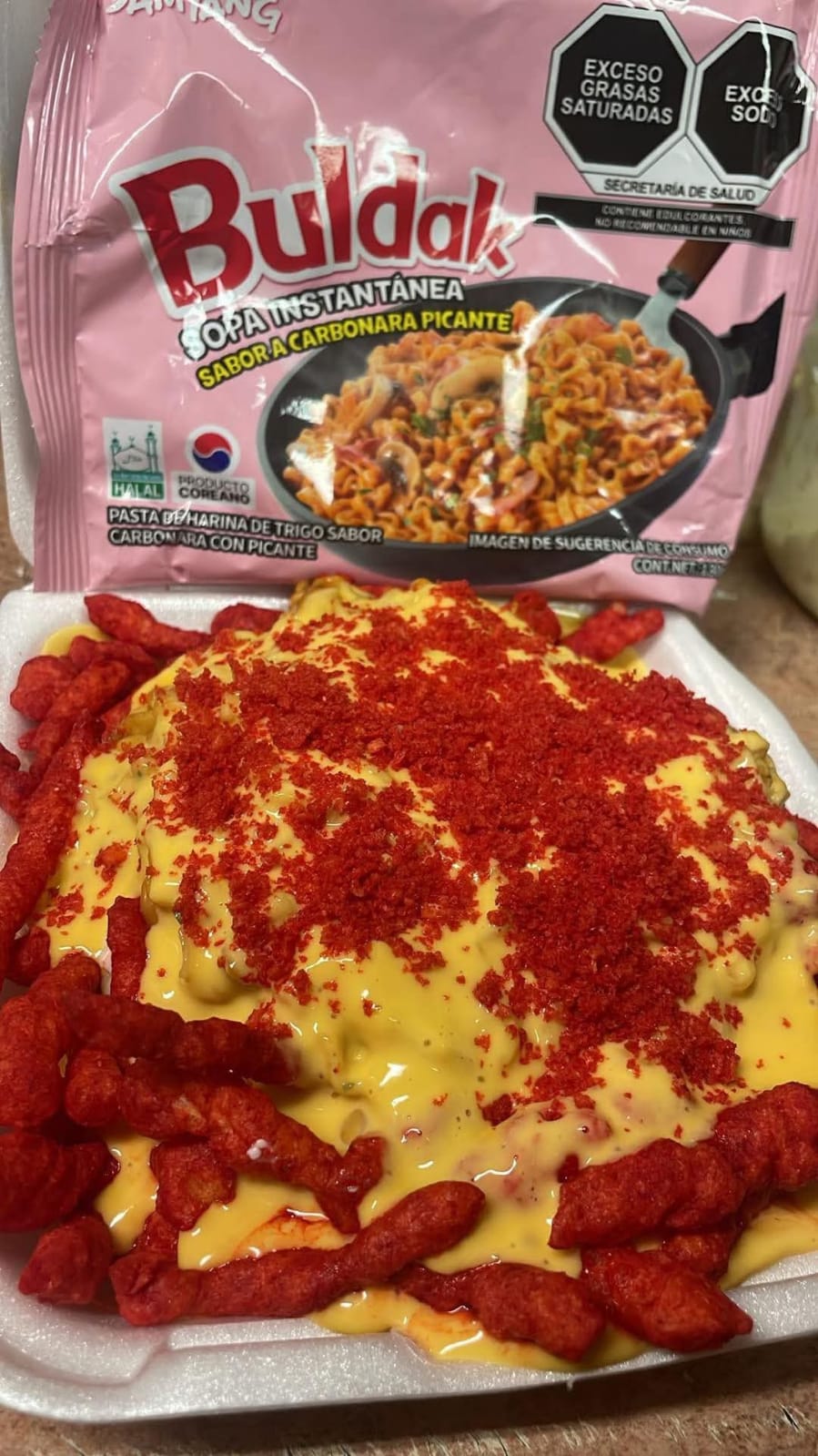 buldak preparada con elote , papitas a elección y bañada de queso amarillo