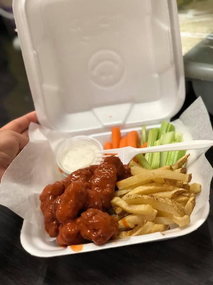 10 piezas , papas fritas,apio, zanahoria y ranch