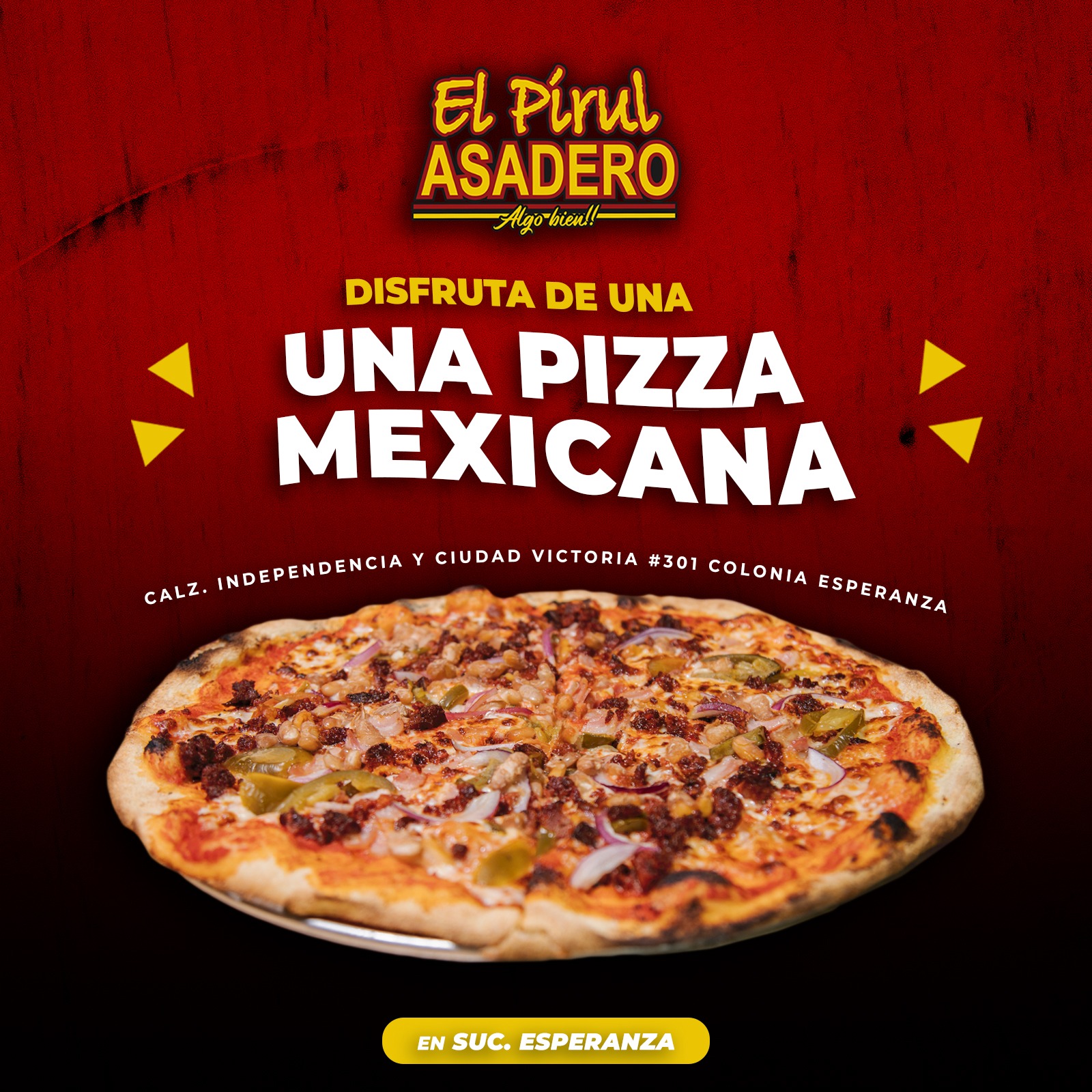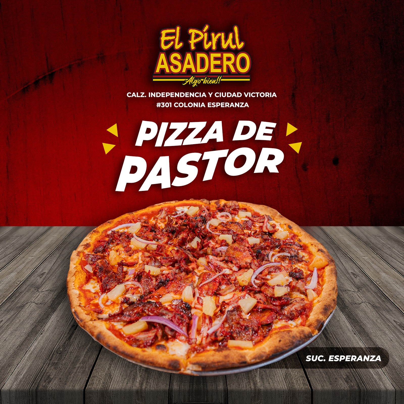 Salsa de la casa, queso, carne al pastor, cebolla y piña.