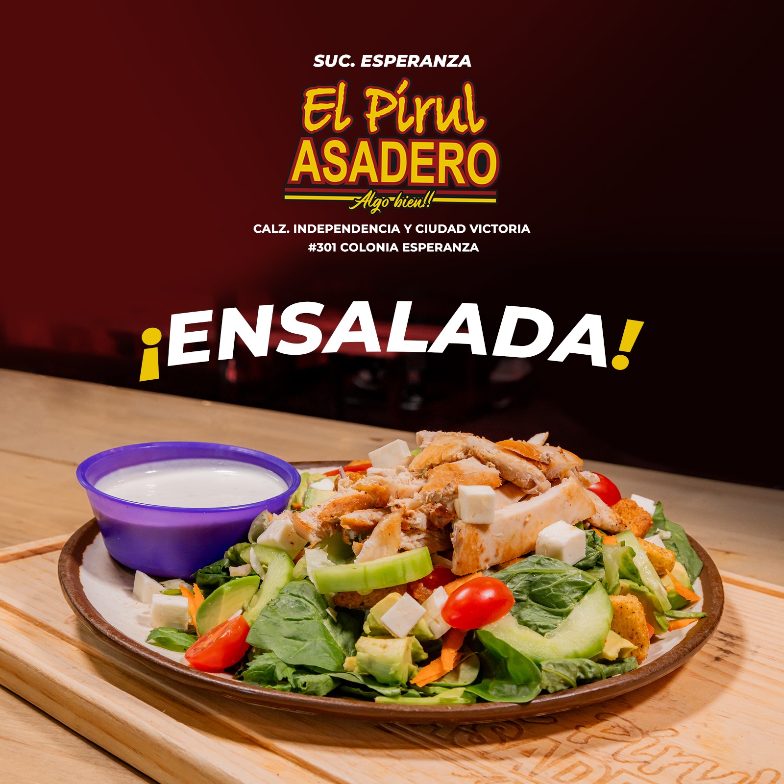 Lechuga, pepino, tomate, zanahoria, cebolla, queso panela, crutones y proteína a elegir.
