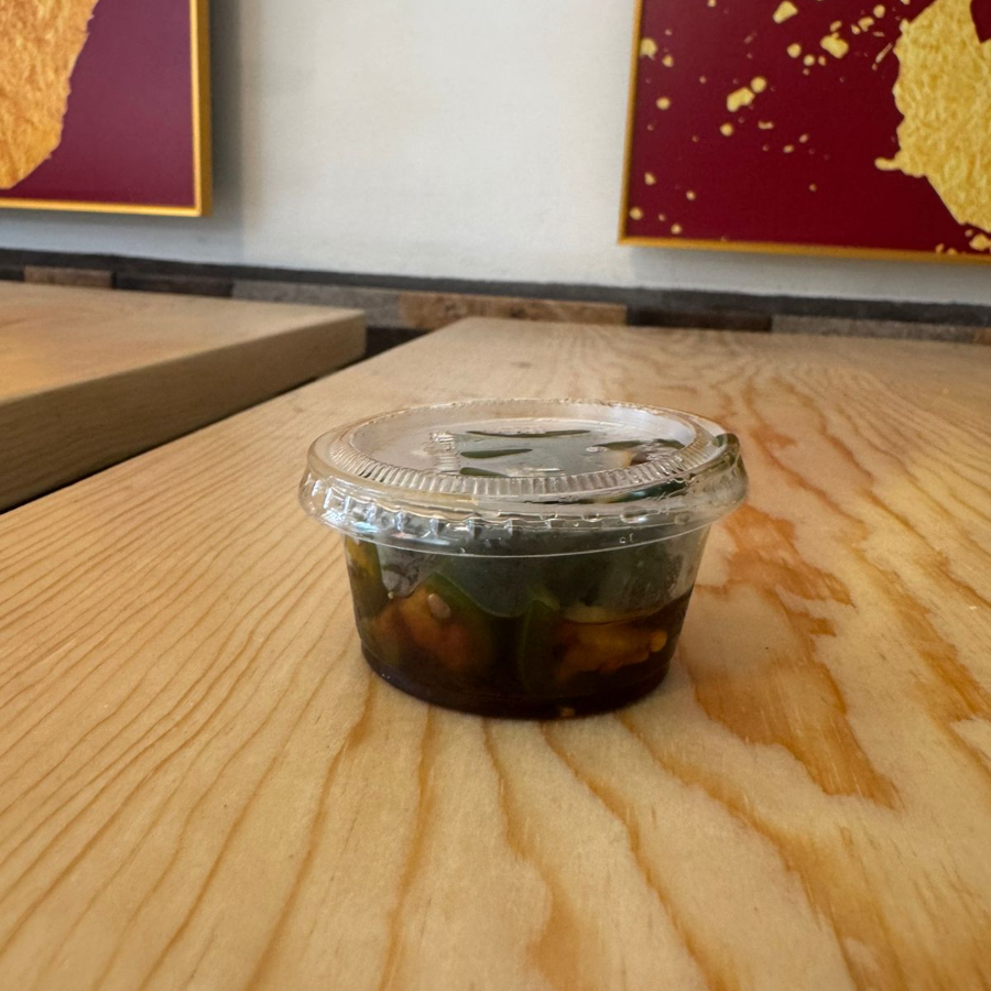 Chiles jalapeños acompañado en una combinacion de salsa de soya y limon