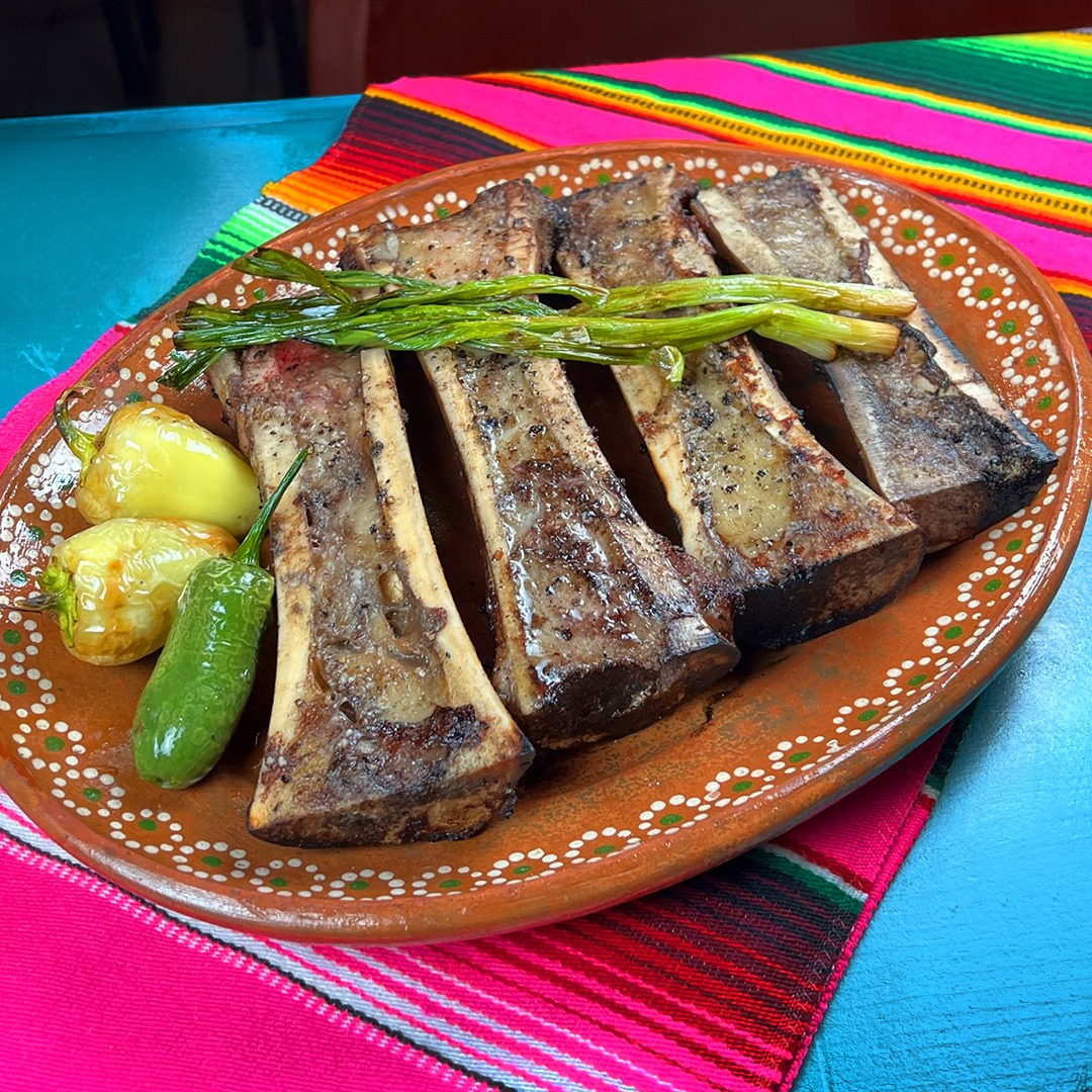 Servidos con queso y con carne de chamorro en chile colorado, guacamole, salsa bandera, jalapeños y cremas agria.