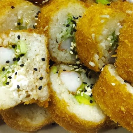 Camaron,pepino,aguacate,queso ( forrado de philadelphia y camaron)