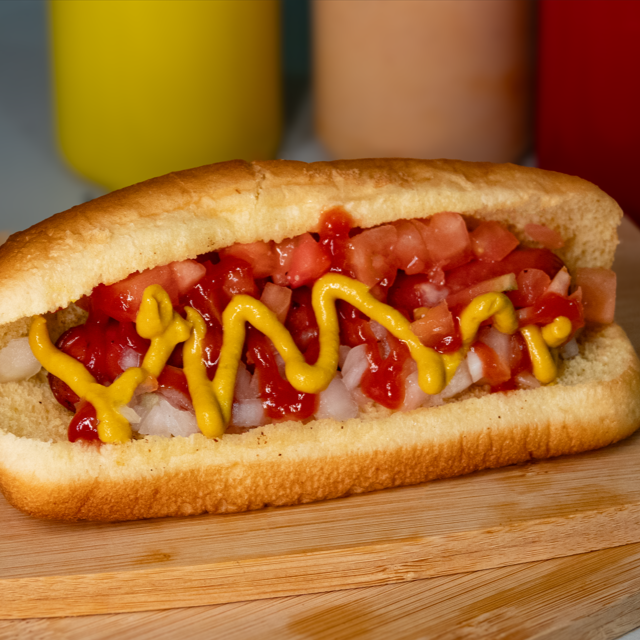 Tomate, cebolla, ketchup,moztaza y mayonesa.