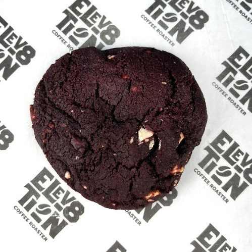 Galleta clasica de red velvet con chispas de chocolate blanco