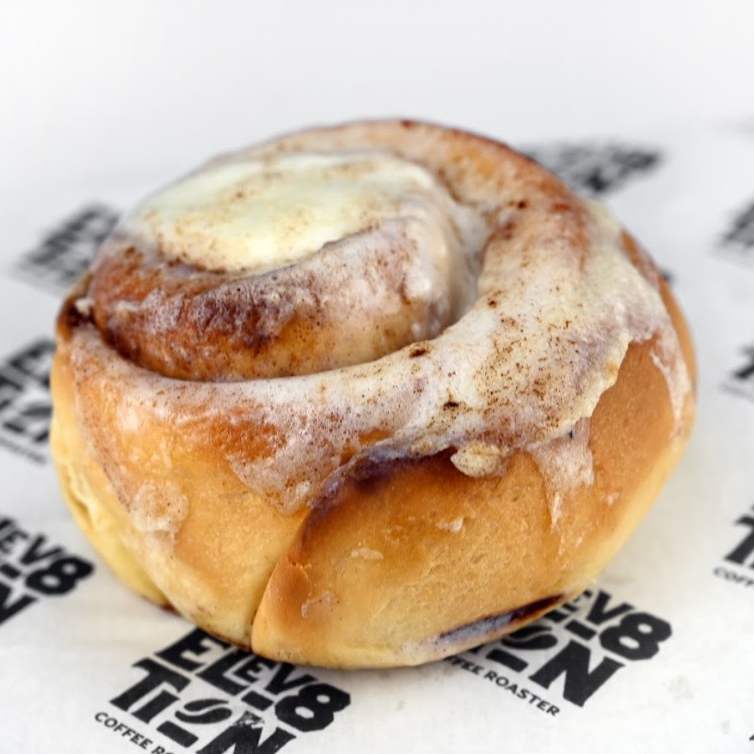 Rol de canela tradicional con glaseado cremoso con toping de tocino y miel de maple