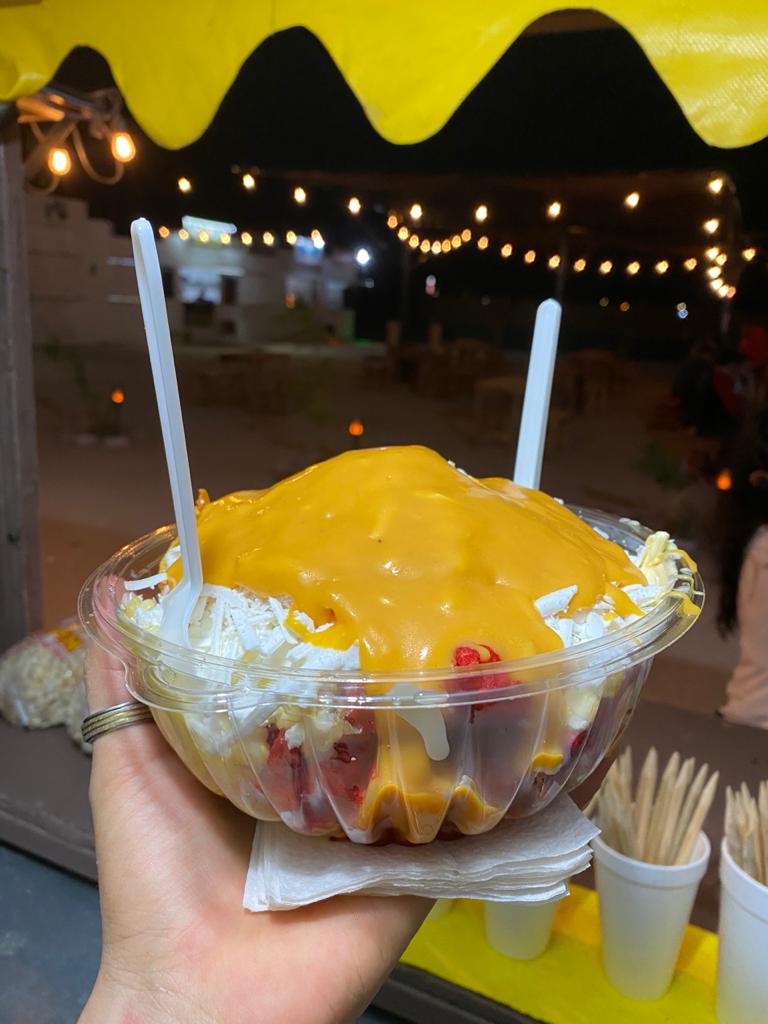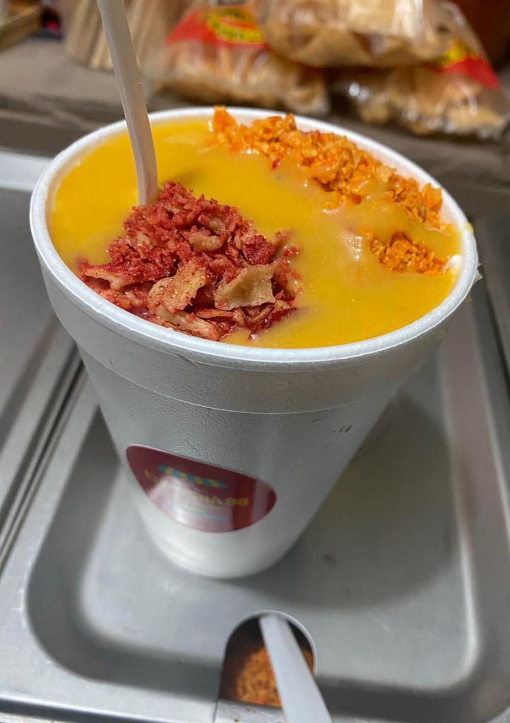 Preparado con mantequilla, mayonesa, crema, queso rayado y limon... Además lleva Sabritas en trozos de su elección y queso para nachos