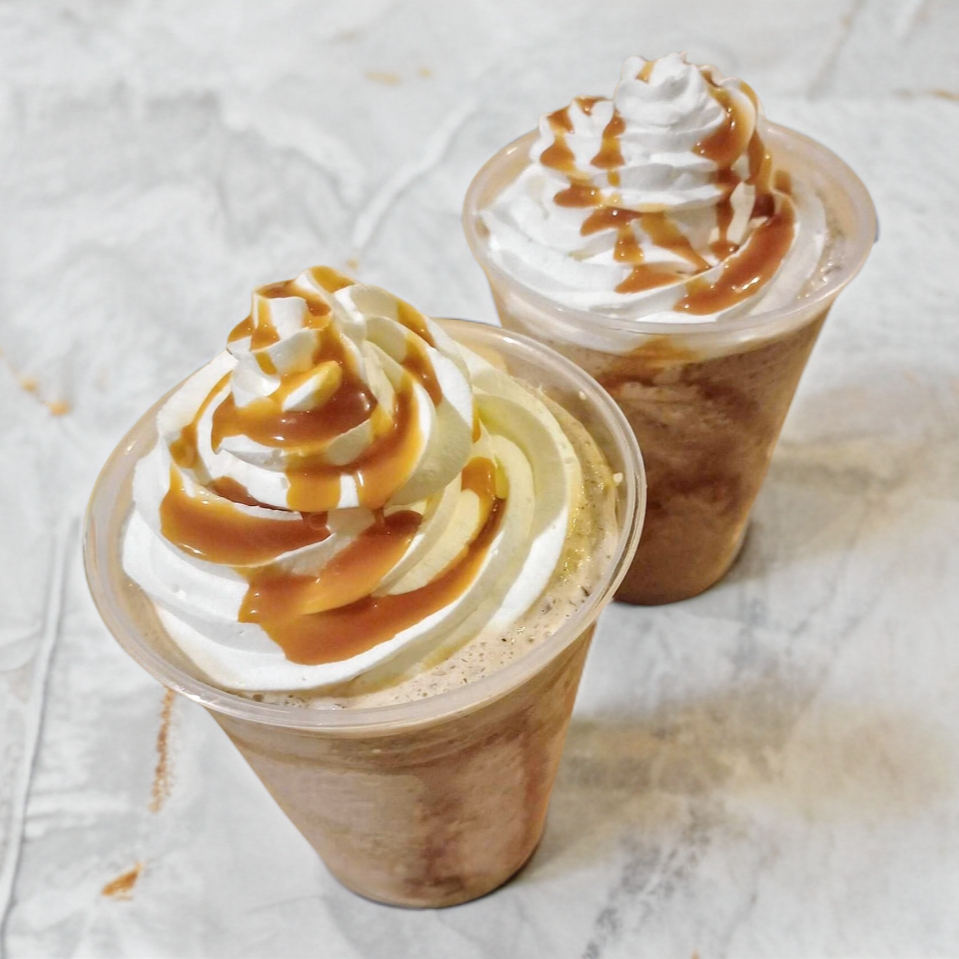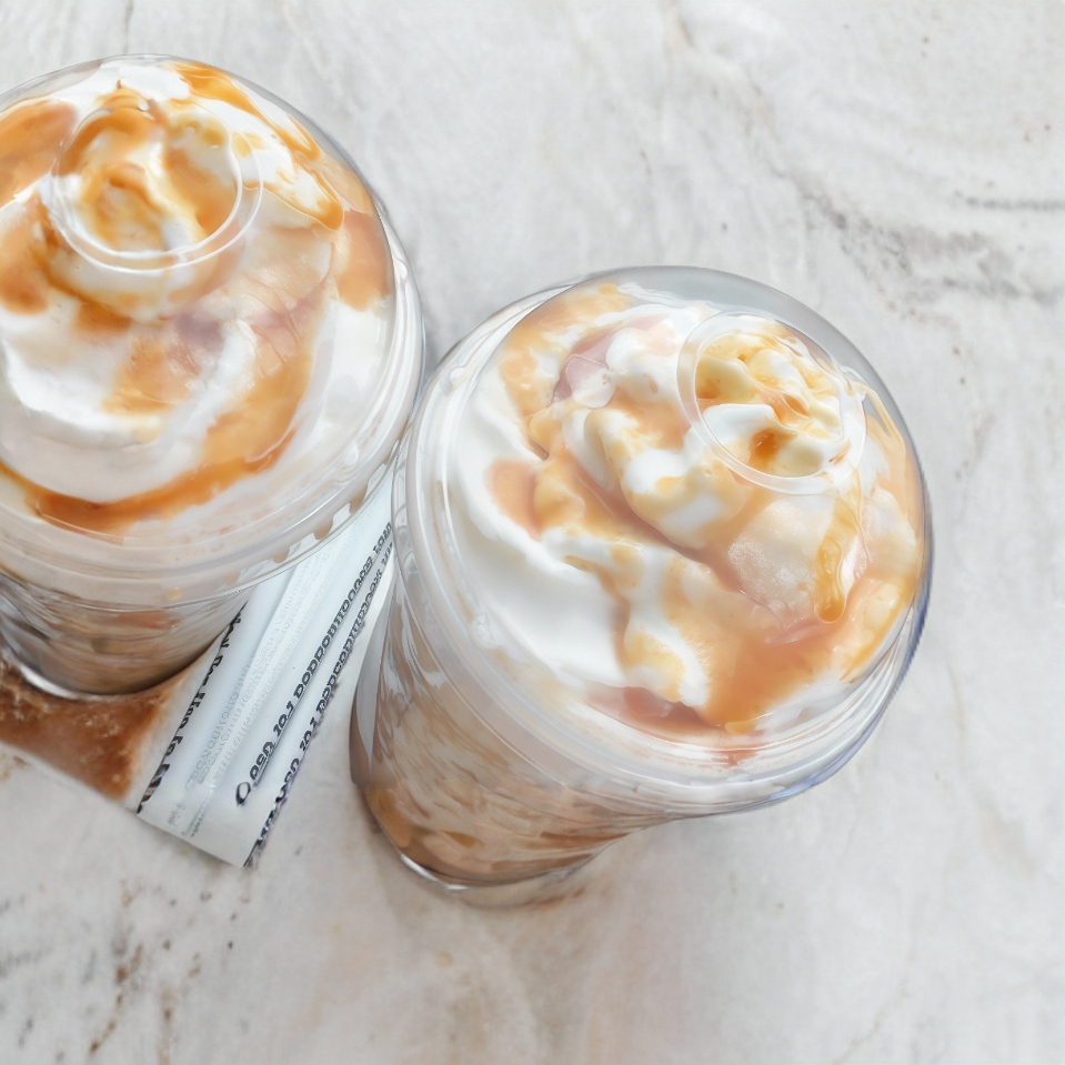Frappe sabor cappuccino decorado con caramelo