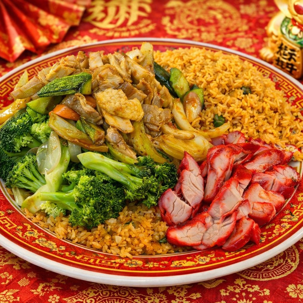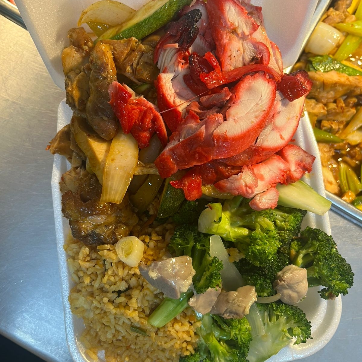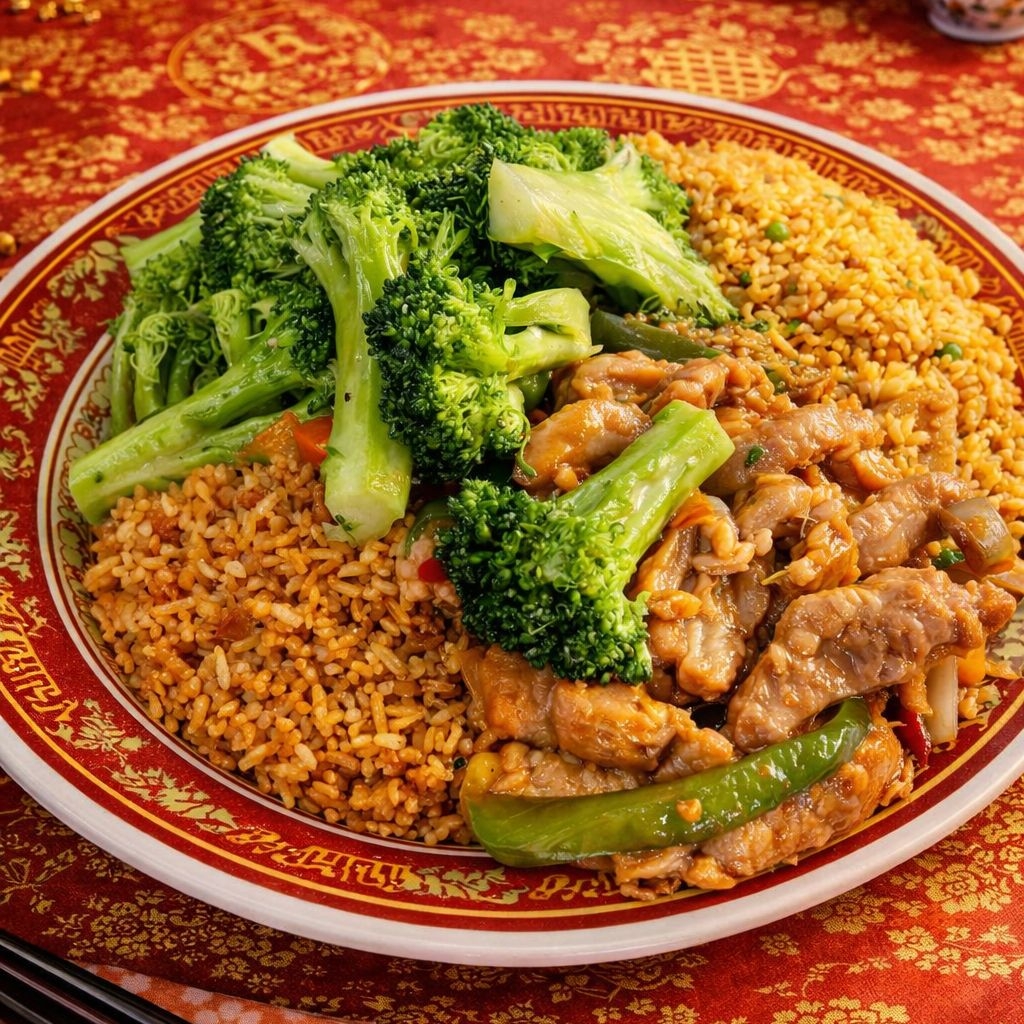 Arroz Frito*1 + Brócoli (de Pollo)*1 + Pollo Mongol*1 + Carnitas Rojas (de Pollo)*1