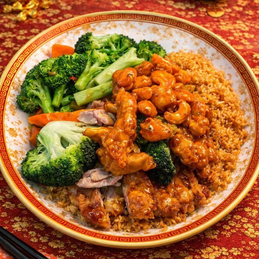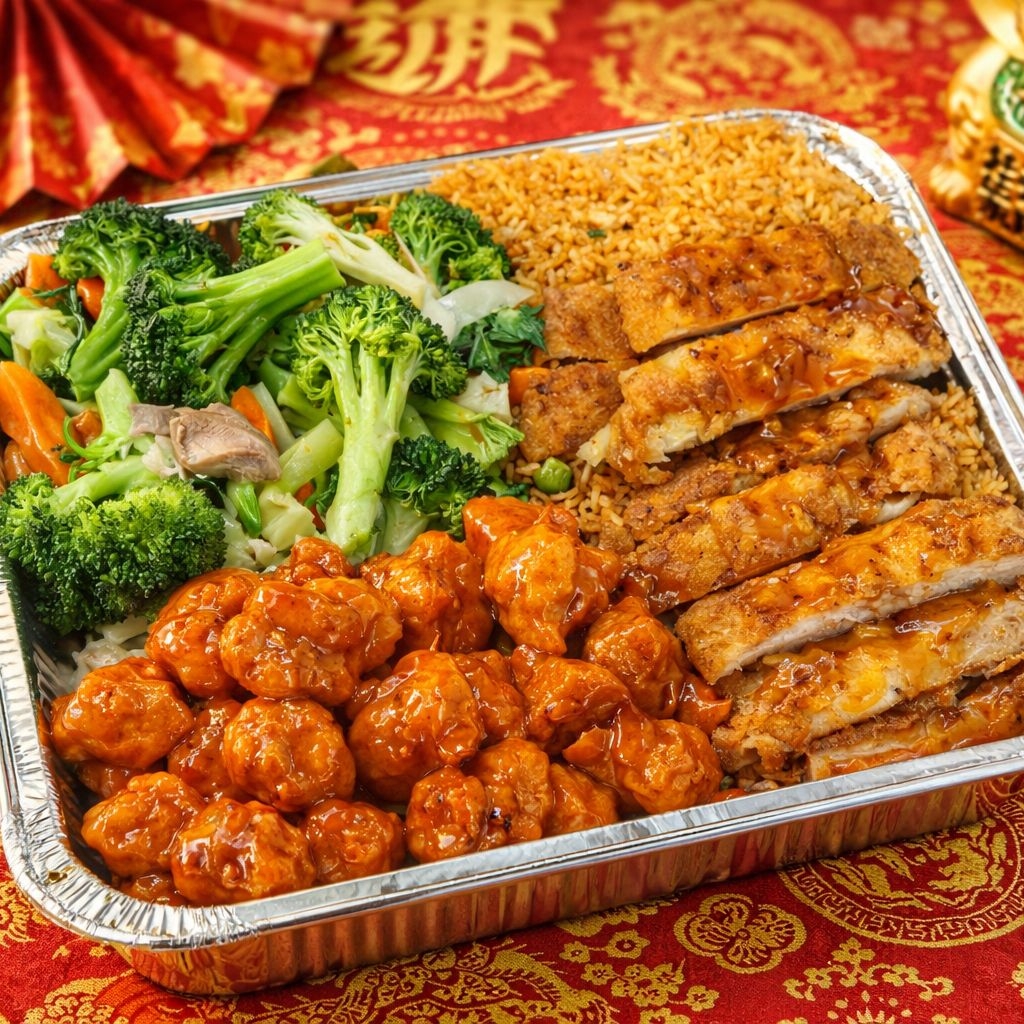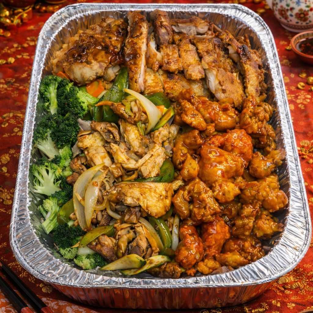 Arroz Frito*1 + Brócoli (de Pollo)*1 + Pollo Plancha*1 + Pollo Mongol*1 + Pollo Piña / Pollo Agridulce*1 + Promo Famosa China*1 + Salsa Tomate / Salsa Soya*1