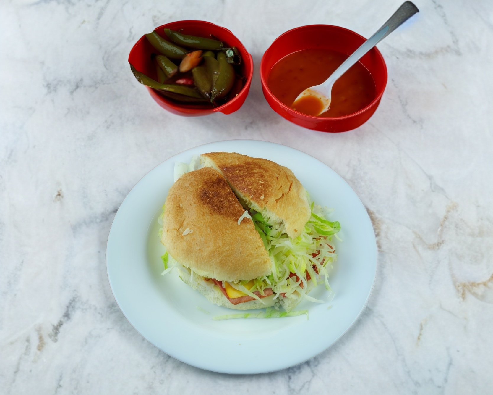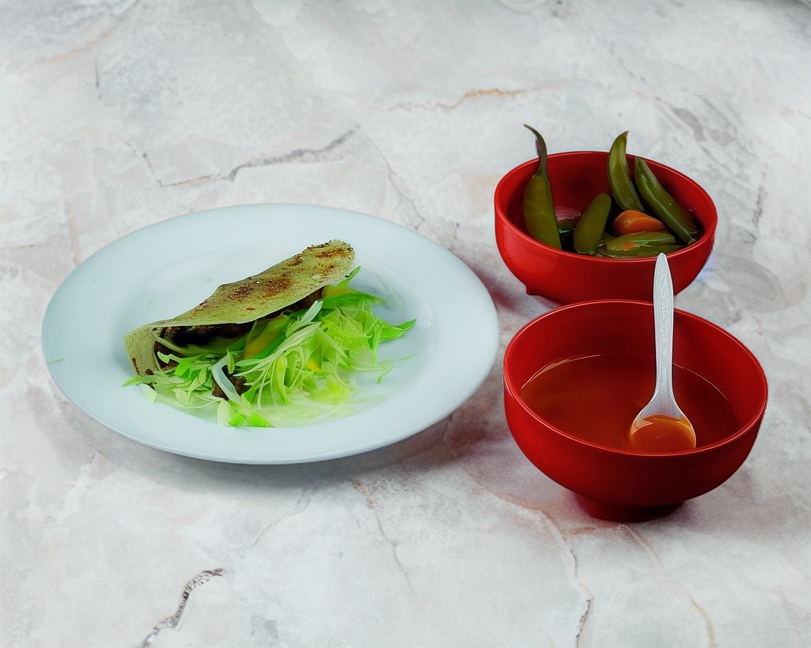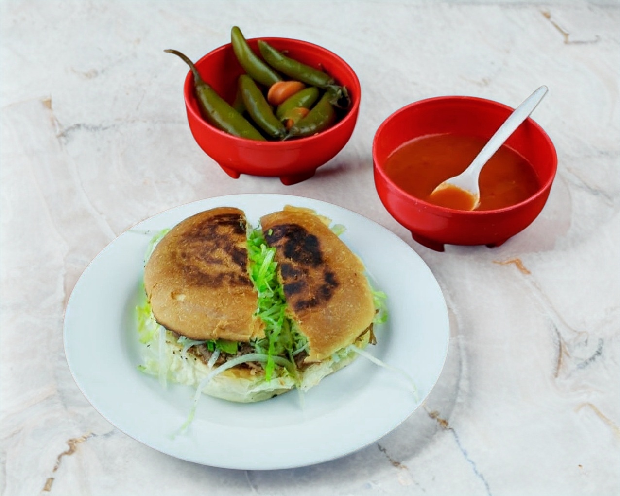 1 pza, de carne deshebrada, acompañado de lechuga, queso, salsa de tomate.