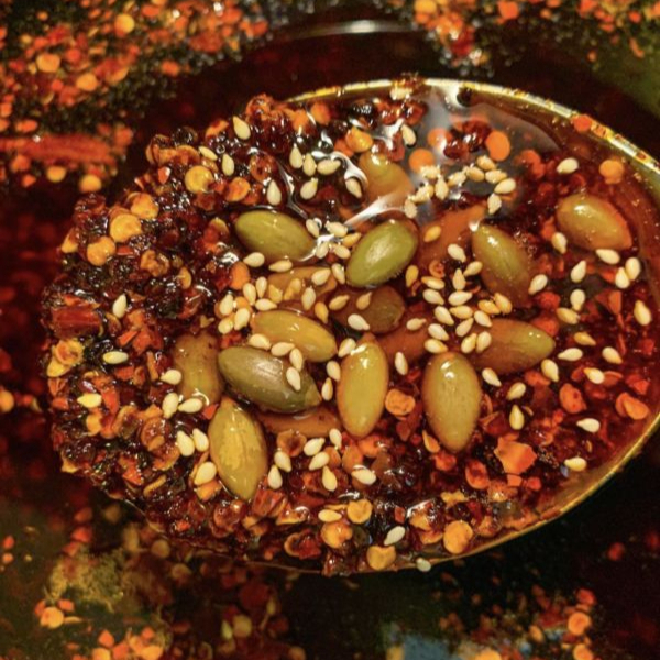 1 oz de nuestra salsa macha casera, con variedad de semillas y chiles secos.