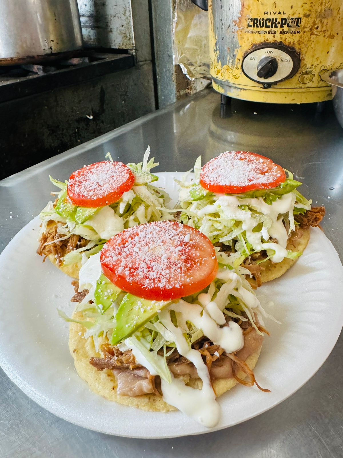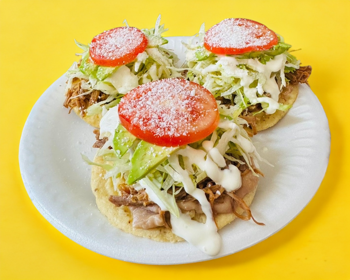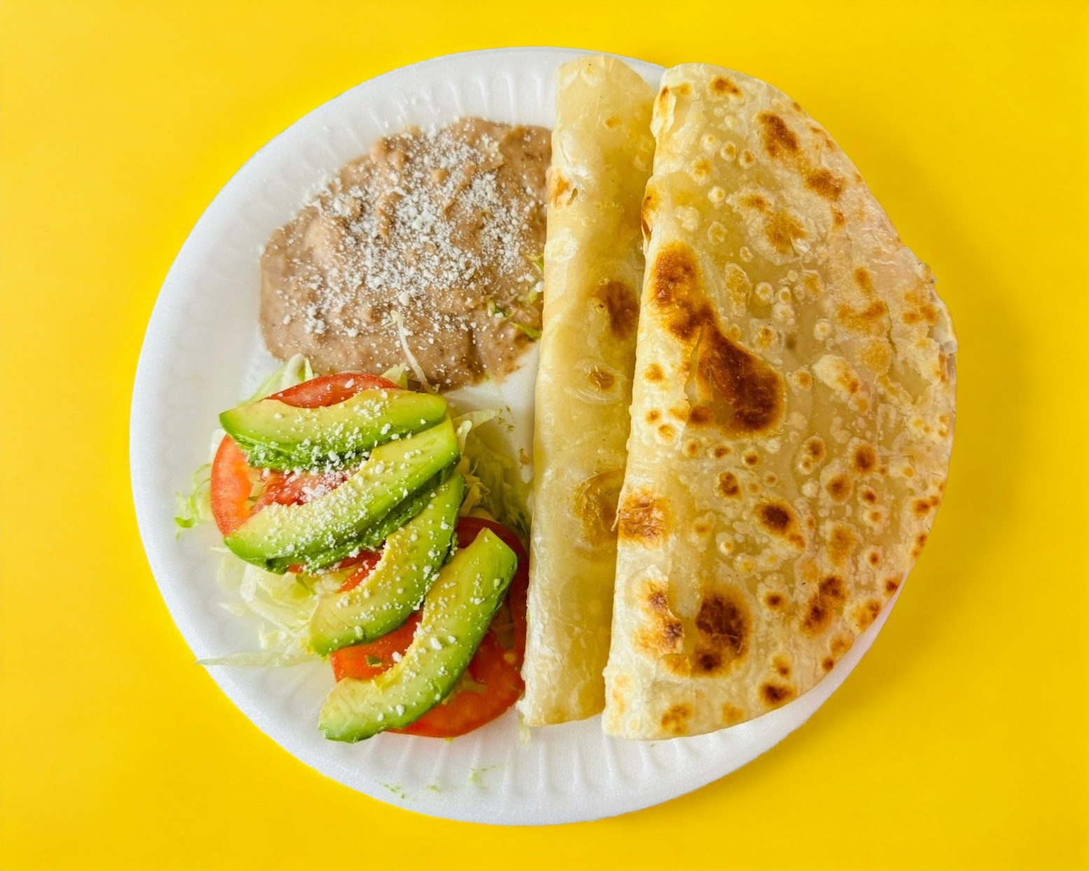 Orden de 3 quesadillas con carne desebrada, una porcion de frijoles y ensalada