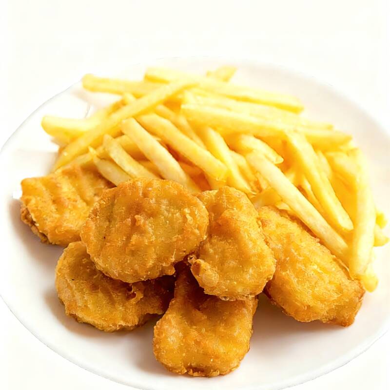 2 Tortas ( jamón y machaca), 5 burritos de machaca, 4 pzas nuggets, papas fritas y un litro de té gratis