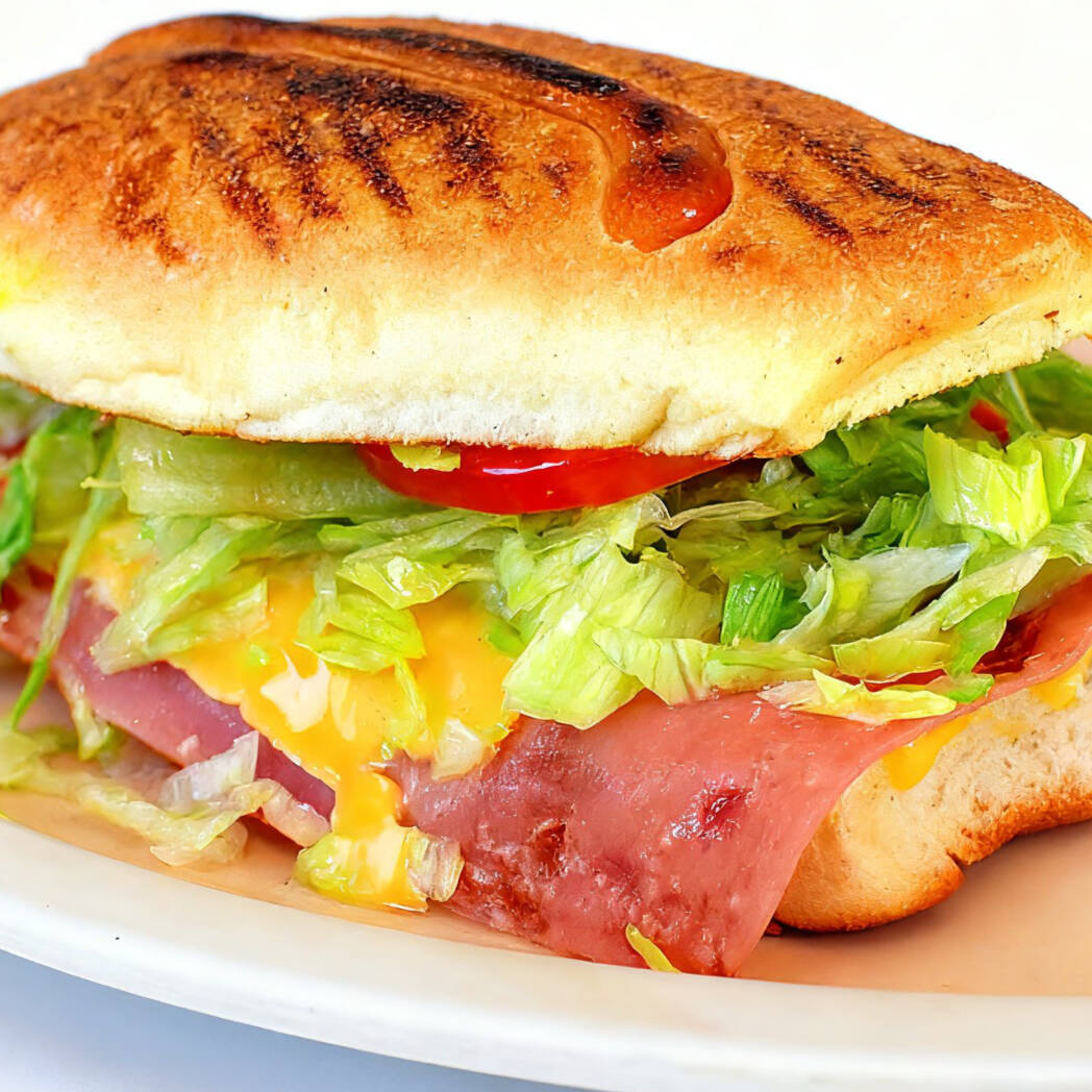 Torta de Jamón con Queso acompañada de papas fritas y un té chico